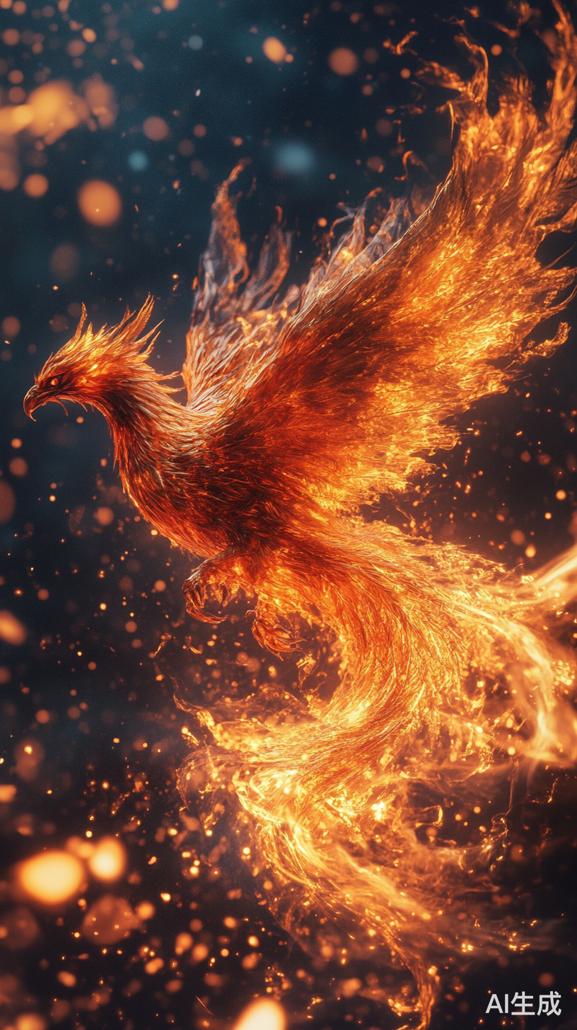 Midjourney Prompt:Chinese Phoenix: A majestic Chinese phoenix rising from the ashes in a fiery display of rebirth and transformation v 6.1 style raw ar 9:16