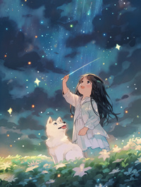 一条美人鱼,有这银白色鱼尾,月白色头发,头饰以贝壳珍珠为主,长相美丽,不食人间烟火,二次元画风,在美人鱼周围是璀璨的繁星,身后是皎洁的月亮,她的鱼尾上还有珍珠链条,美人鱼长得很成熟,有一种不可亵渎的美感,还有点不近人情,还带着点霸气!!!眼神里似有万千星辰,霸气!!!
