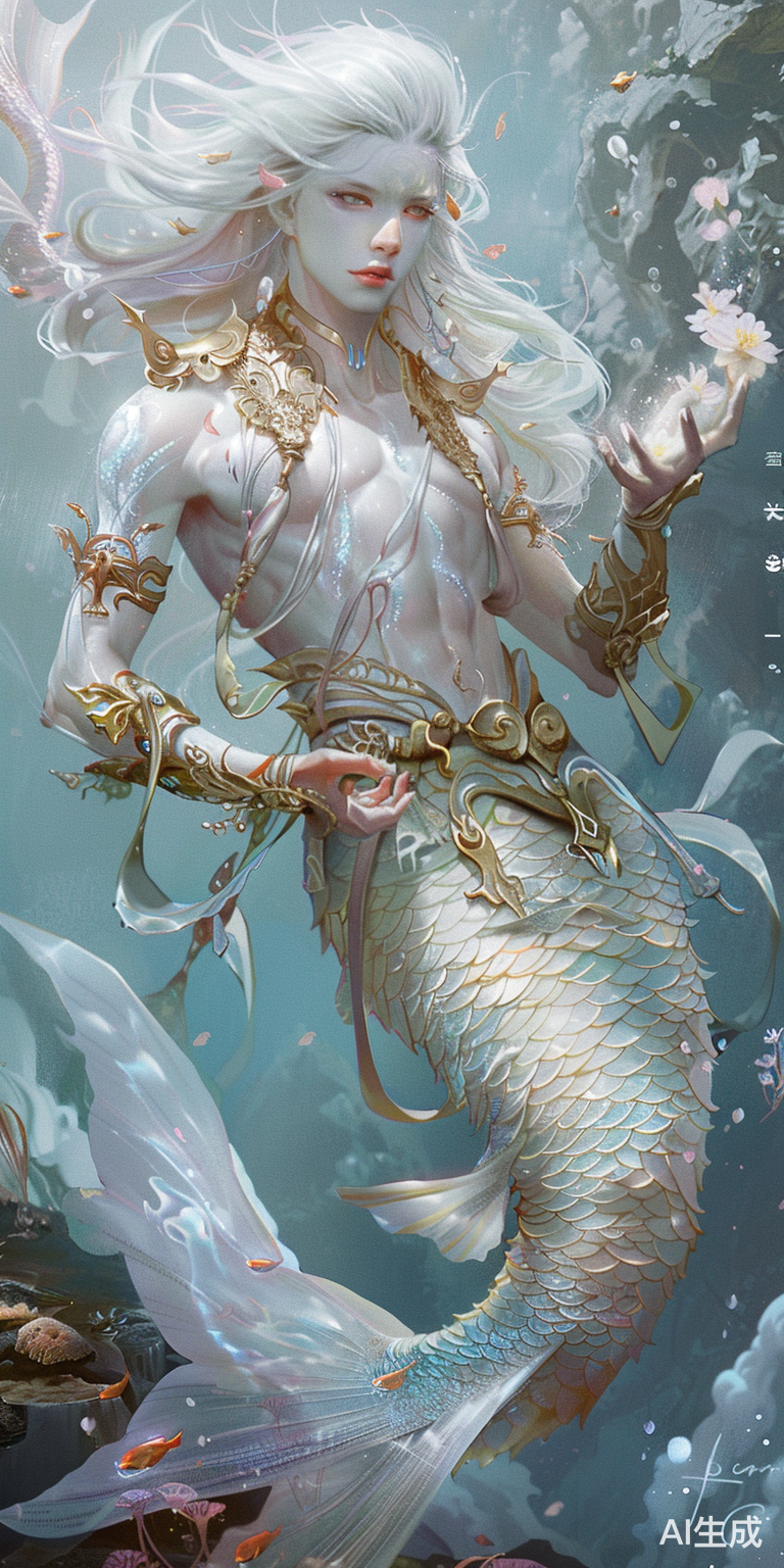 帅气男生,年轻有活力,独特魅力,白发闪耀,伴随国宝大熊猫,神秘巫师背景,手持扇子,耳环眼镜点缀,独特气质,室内环境,白色西装,烟雾缭绕,手工凳子制作中。