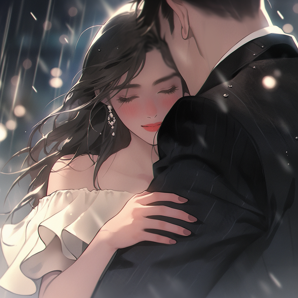 路边两边垂柳盛开,粉色紫色鲜花盛开,路的尽头是一个酒家,酒家的名字是LUCk浓酒馆,酒家院子里鲜花盛开,有向日葵、绣球花。一个身材健朗、英俊,穿着白衬衣的男子拉着一个身材高挑,大波浪长发头戴蝴蝶结,穿着白色连衣裙的女子走向酒家。漫画风格