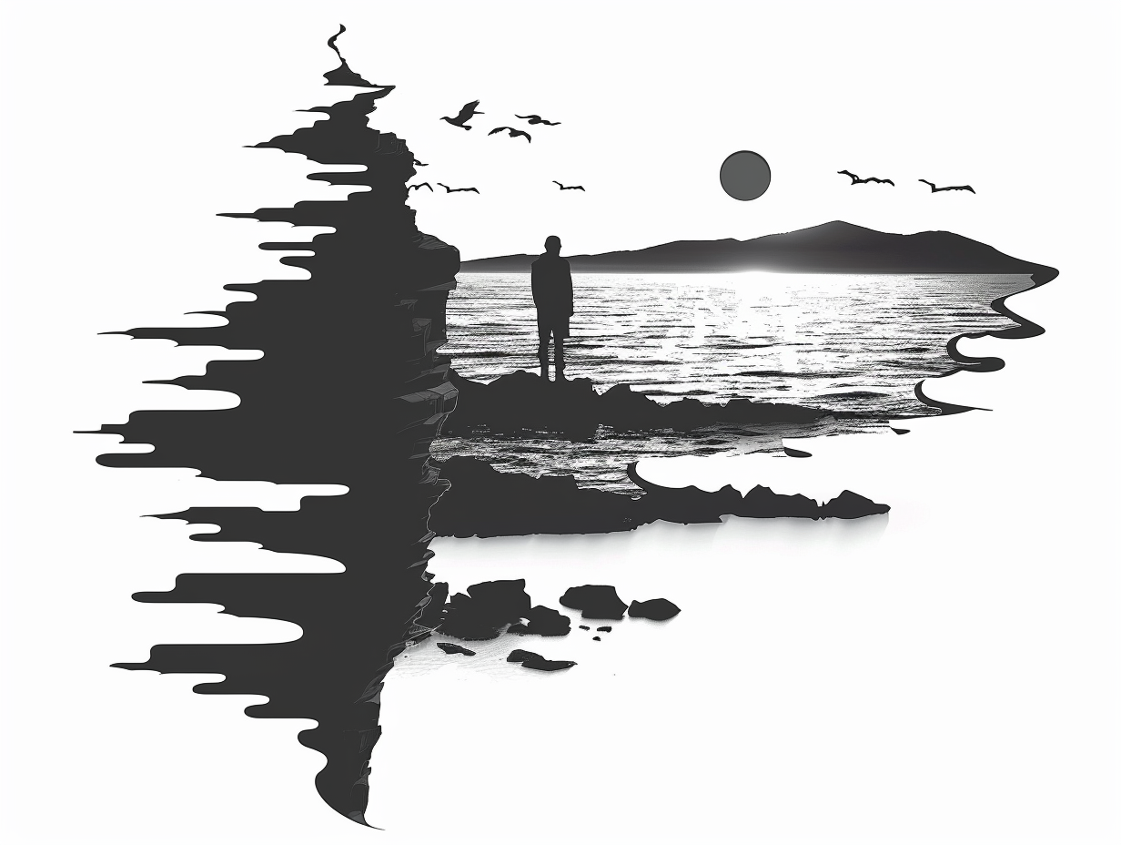 请你画一张及其平凡无奇的iPhone自拍照,没有明确的主体或者构图感——就像是随手一拍的快照。照片略带运动模糊,阳光不均导致轻微曝光过度。角度尴尬,构图混乱,整体呈现出一种刻意的平庸感——就像是从口袋里拿手机时不小心拍到的一张自拍。主角是一个幽灵在户外抽烟。
