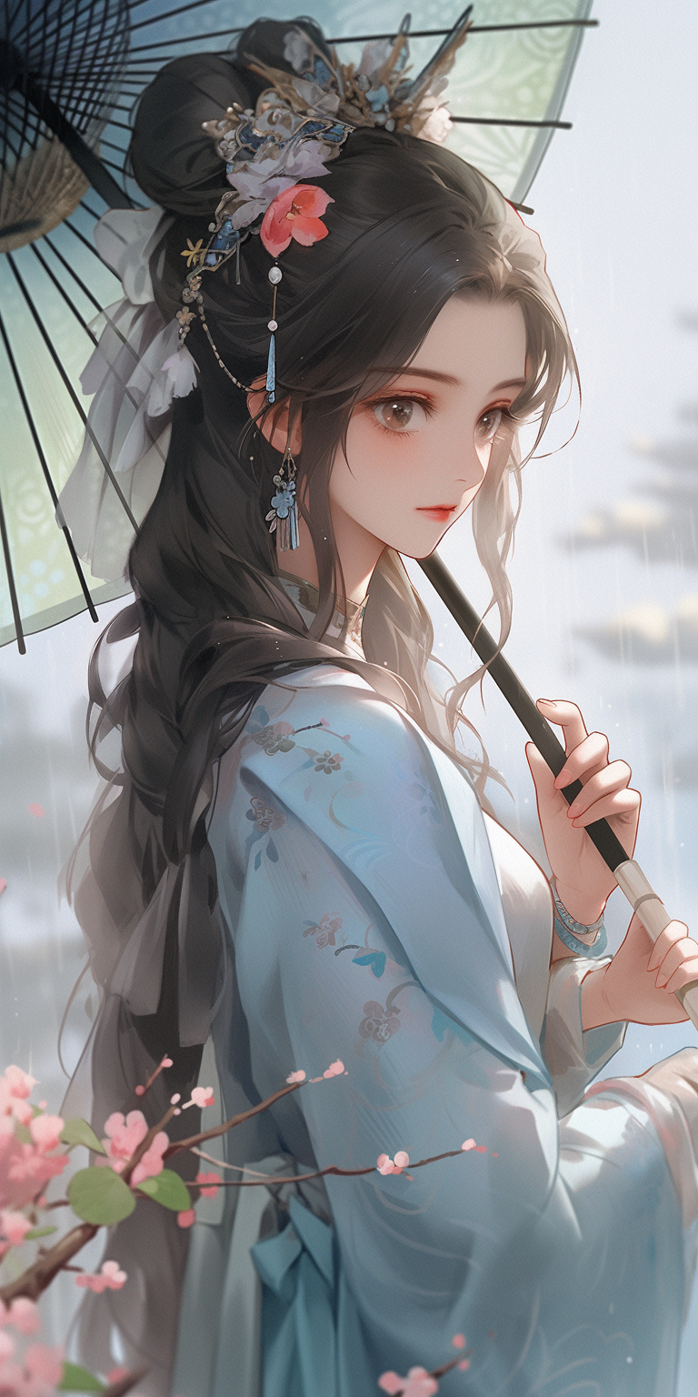 一个唐代美女,穿粉色薄纱裙,柔光唯美
