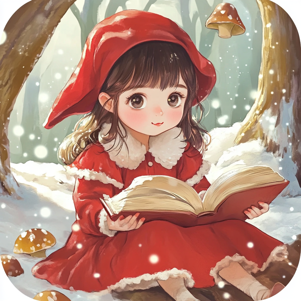 图宫崎骏风格,一个勇敢的小女孩历尽艰辛万苦寻找梅花救治母亲。女孩独自一人来到神秘的森林。夸张的比例表现、柔和的光线效果、背景虚化突出主体互动。超高清,超细节,镜头聚焦在雪狼守护梅花的场景和小女孩昂首挺胸勇敢的面对