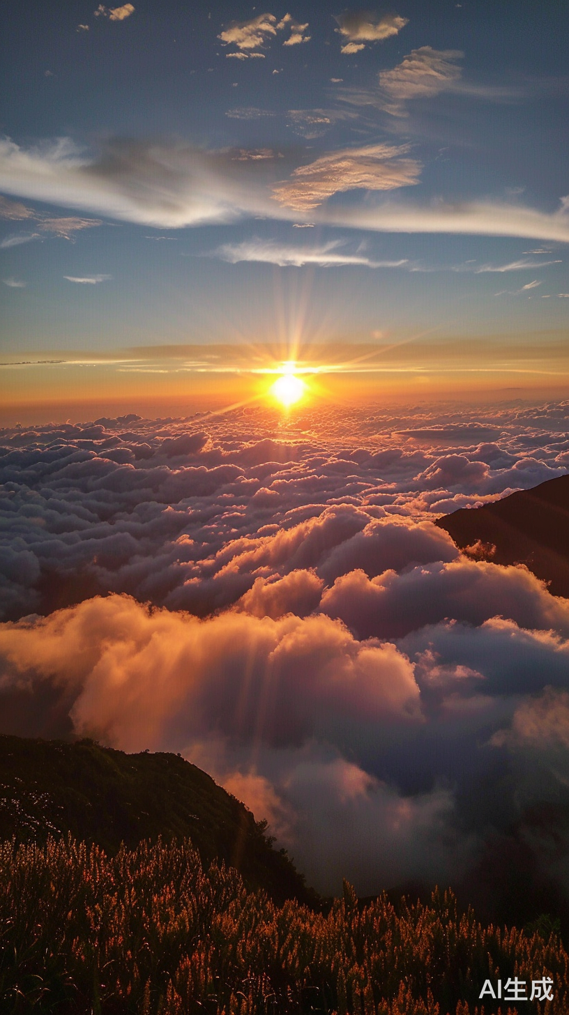 天空,广角镜头,,绿洲,唯美风景 日落 云海