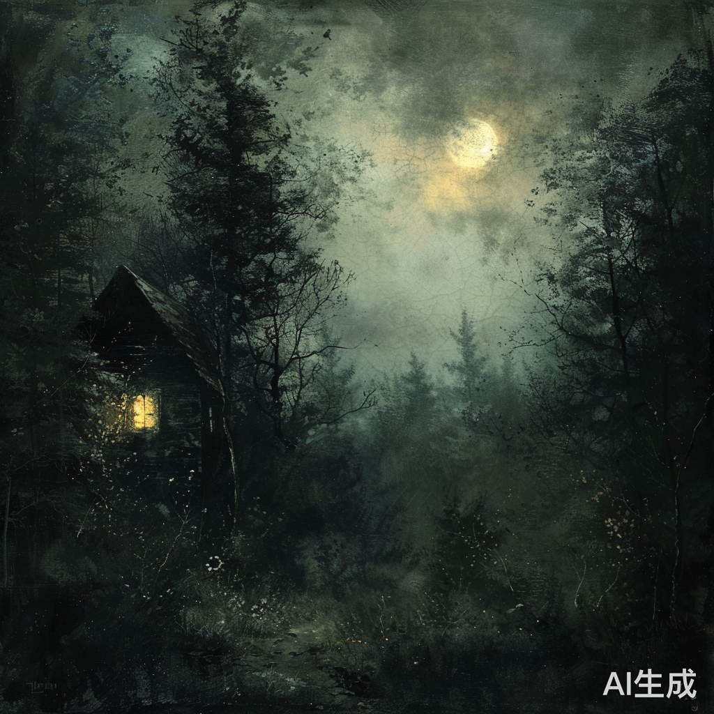 昏暗的月光下,在幽暗的密林深处,有一个亮着微弱灯光的小屋,透露出恐怖和诡异