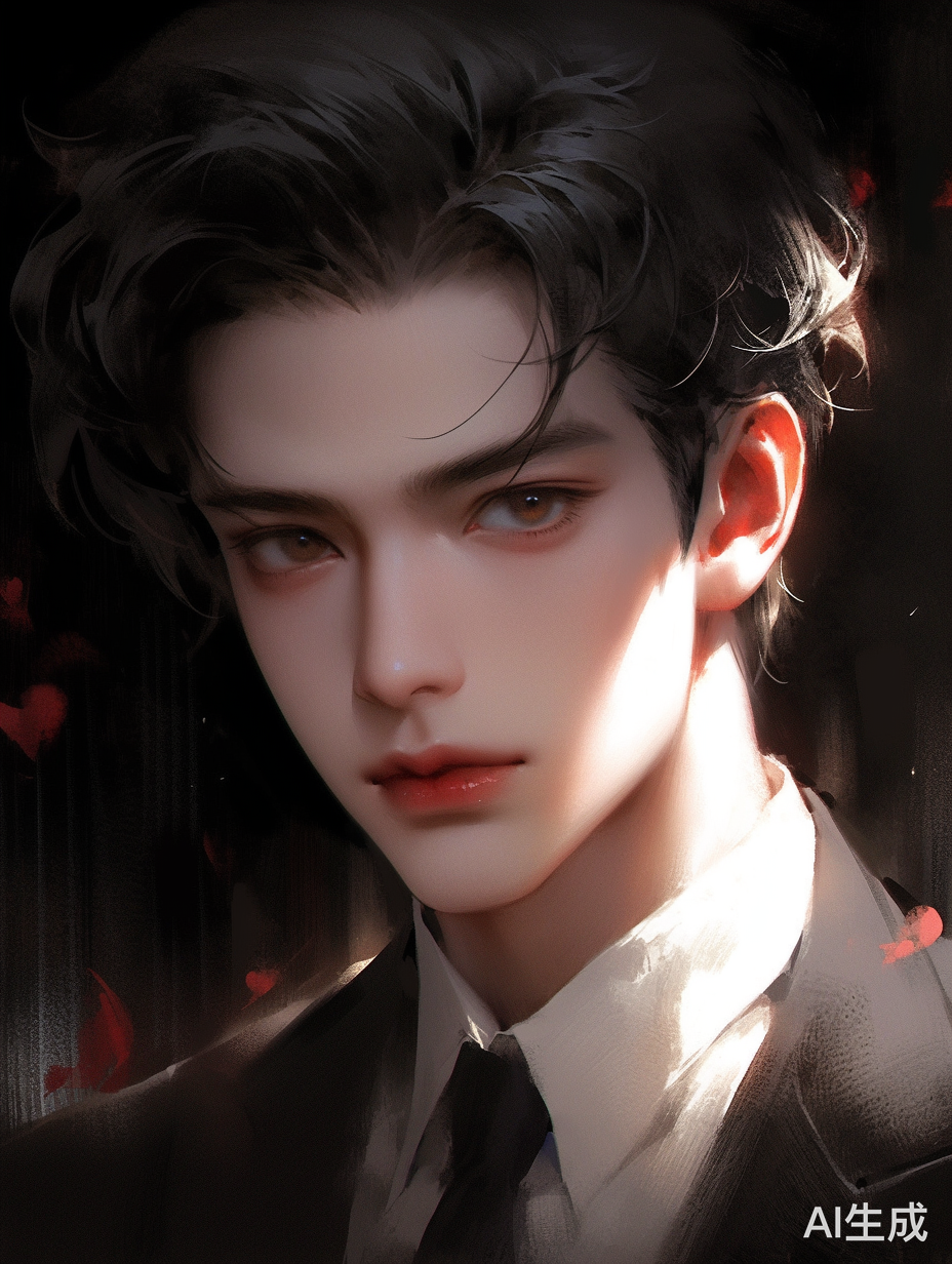 单人自拍,斯文败类,黑色短发 发丝蓬松凌乱,速写红唇,少年感,绝美眼睛,眼睛光感 长睫毛,写实 逼真,红唇,光影细节,珠光,李洙赫,蔡徐坤, 帅哥,绝美五官,年轻帅哥,宝石般眼睛,含情眼,淡嘴唇,西装,近距离肖像画,速写红唇,白衬衫,喉结,锁骨