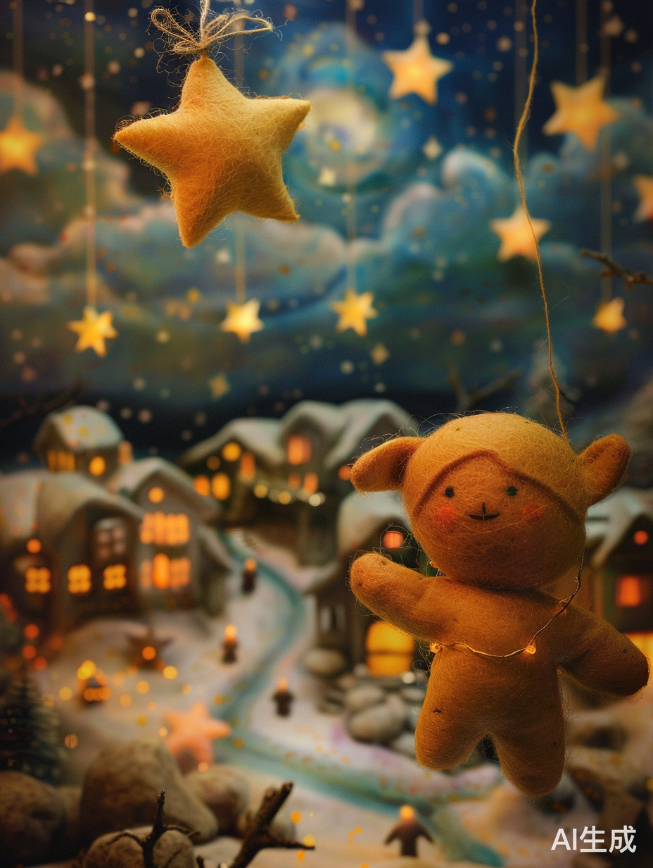 一颗星星从夜空中缓缓下降,穿过云层,接近杰米的窗户。星星在窗外轻轻敲窗,杰米惊讶地转身。