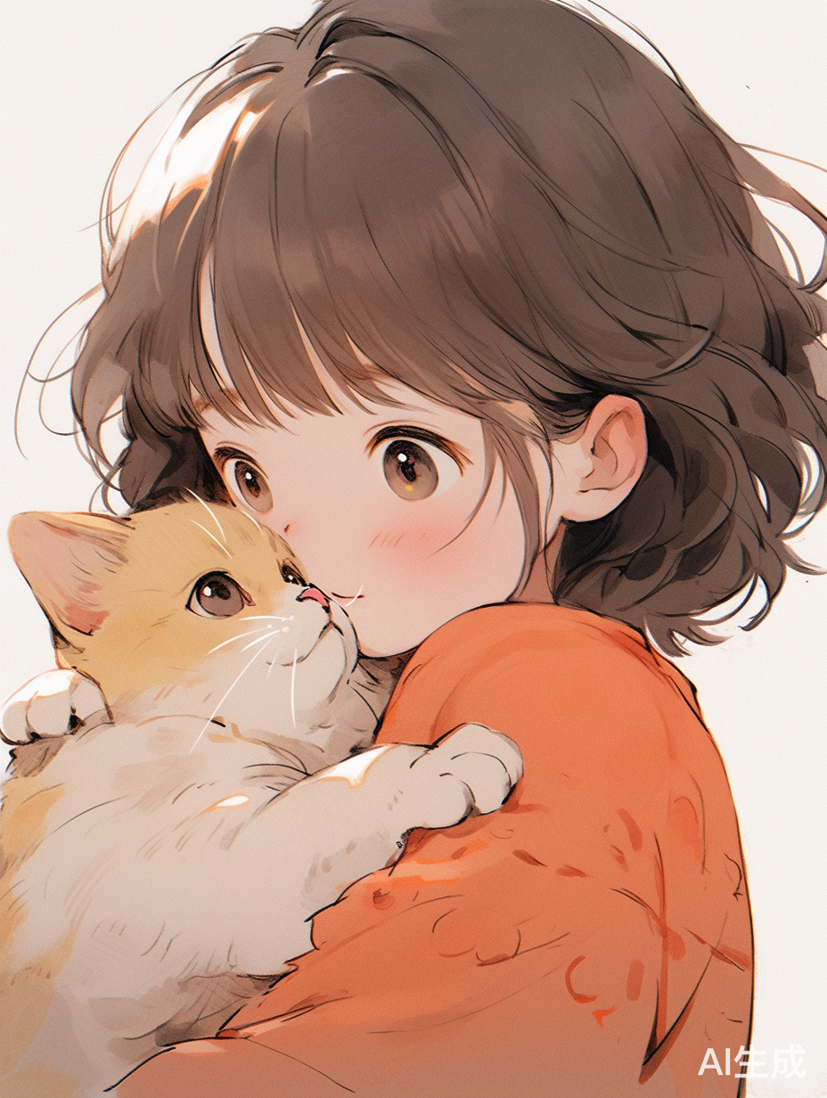 抱猫咪的短发小女孩