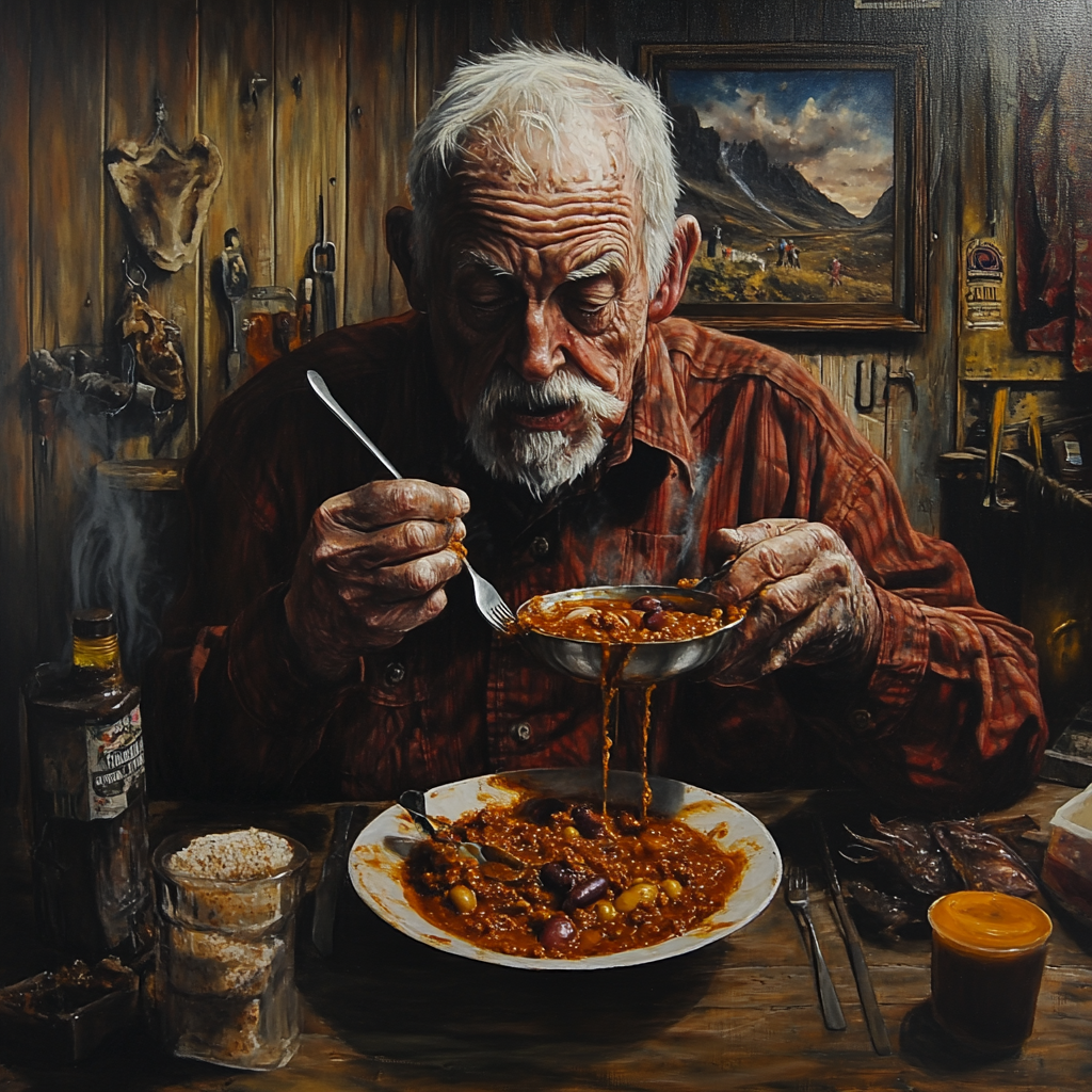 画面中,一位男子脚踏厚实的黄土,他微微仰头,目光坚定又带着几分愤懑,直直地望向苍天。他并非仙风道骨的神祇,也不是超凡脱俗的仙人,只是芸芸众生里为生活奔波的普通人。他身着朴素的衣衫,上面沾染着岁月与劳作留下的痕迹。手中或许还握着简单的工具,那是他谋生的依仗。他不过是为了那可怜巴巴的二两碎银,却仿佛在渡劫一般,历经了数十年的艰辛。每一道皱纹里都藏着生活的酸甜苦辣,每一滴汗水都见证着他的坚韧与无奈。