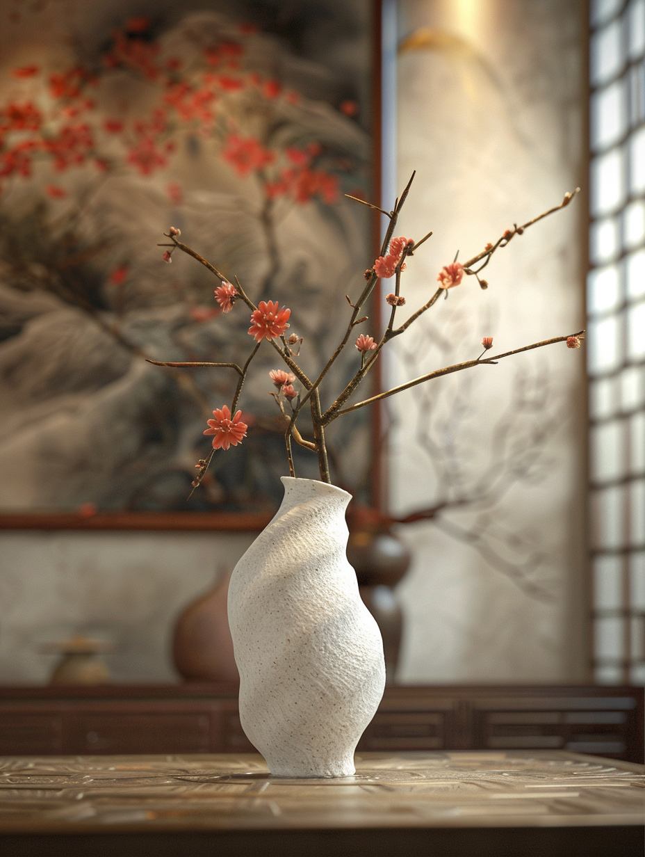 场景构图:司马迁以跪坐姿态居于画面中央,身后夯土墙面肌理斑驳,表面可见竹篾编织纹路与风化裂痕。左侧斜置梯形竹简架,分三层堆叠近百卷简册,部分简牒边缘磨损露出竹纤维。右后方立式木格窗棂间透出深青色夜空,一截虬曲枯枝横斜,弦月冷光在简册表面投下龟甲状格栅阴影。人物细节:司马迁面部呈深麦色,眉弓骨突出形成深邃眼窝,眼角鱼尾纹如刀刻般延伸至鬓角。鼻梁挺直但鼻翼两侧法令纹明显,下颌线条因缺齿稍显松弛。唇色苍白无血色,下巴光洁无任何须根残留。灰白头发以麻布巾扎成椎髻,发际线后移露出宽阔前额,耳际散落数缕银丝。服饰考据:身着右衽曲裾深衣,衣料为粗织苎麻本色,领缘及袖口镶靛青细边(宽度0.8厘米符合马王堆出土实物)。腰间束两指宽葛布带,左侧悬青玉髓印章(参考满城汉墓组佩形制)。曲裾下摆自然铺展于苇席,露出磨损严重的翘头布履,鞋底可见多次修补的葛麻补丁。器物陈设:1. 髹漆松木案几(长120cm×宽60cm×高30cm)表面细密龟裂纹中沁入墨渍,右端置错金云气纹博山炉,炉体高15cm,山形盖镂空处逸出青烟呈螺旋上升。2. 左案角青铜雁鱼灯展开双翼,灯盘盛半凝羊脂,灯烟经雁颈导入腹部清水。灯影在简面投射出水波纹,与墨字形成动态叠
