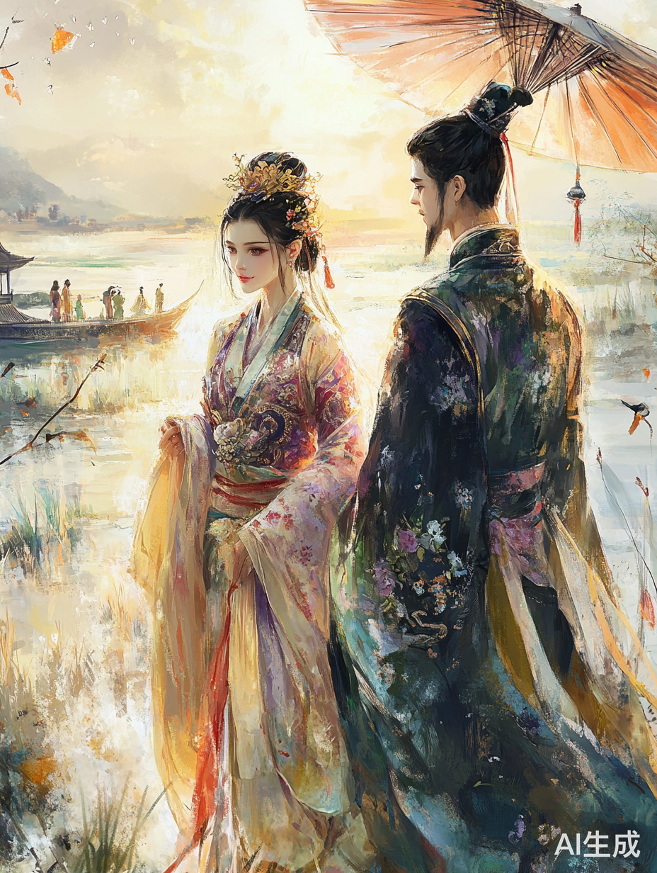你以绘画大师身份画这幅画中一位年轻的女子,身着一件飘逸的纱裙,她的头发梳得整齐有致,轻拂着脸颊,散发出迷人的韵味。她的眼神深邃明亮,透露出一种内在的力量。她的姿态优雅大方,双手轻轻地放在腰间,仿佛在倾听大自然的声音。画面的背景是一片静谧的森林,阳光透过树叶洒在她的身上,形成斑驳的光影。树干挺拔粗壮,象征着坚韧和力量。绿叶茂密繁盛,为画面增添了生机与活力。远处的天空湛蓝广阔,白云悠悠地飘荡在空中,营造出一幅宁静祥和的画面。整幅画作色彩丰富多样,既有冷暖对比鲜明的色彩,又有柔和淡雅的色彩。这些色彩的运用使得画面充满了生命力和活力,同时也展现了画家高超的绘画技巧。画面的构图严谨合理,层次分明,使得整个作品显得大气磅礴。女子的身影在森林中若隐若现,与周围的环境相互映衬,构成了一幅和谐统一的美妙画卷。总的来说,这幅画作以其优美的线条、丰富的色彩、严谨的结构以及无限的创意,展现出了独特的艺术魅力和美感。它不仅仅是一幅美丽的画作,更是一种生活的态度和精神追求。