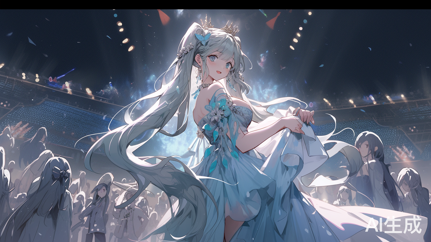 小舞,温柔地看着你,粉银色的拖尾长裙,侧眼对着你,银色的兔耳朵,高贵且优雅,精致的五官上带着一丝俏皮