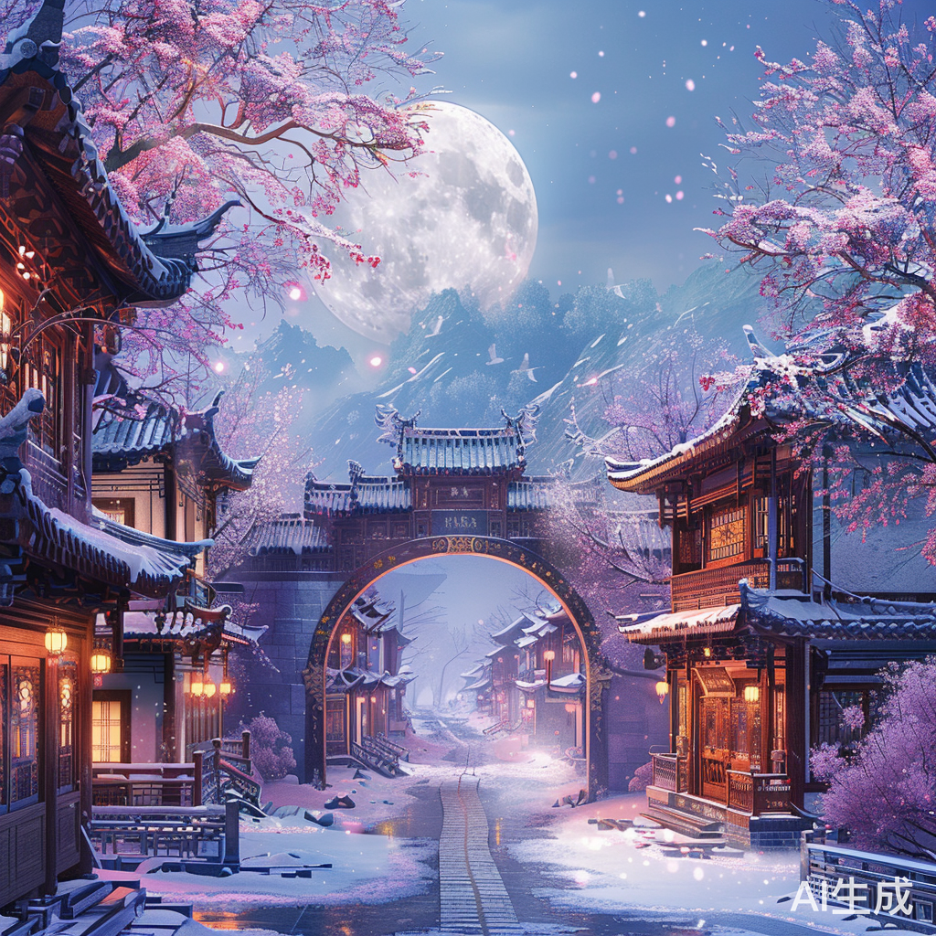 绚丽的绿色极光在寒冷的夜空中舞动,照亮了覆盖着洁白雪花的广袤土地。微风穿过高耸的松树林,发出沙沙声,树上的雪花飘落下来,轻轻点缀着大地。清澈的湖面倒映着天空和山脉的轮廓,充满了神秘而宁静的氛围。湖边的小屋被白雪覆盖,炊烟袅袅升起,给人一种恬淡温馨的感觉。寒冷的空气弥漫着新鲜的松针香气,让人仿佛置身于童话世界之中。
