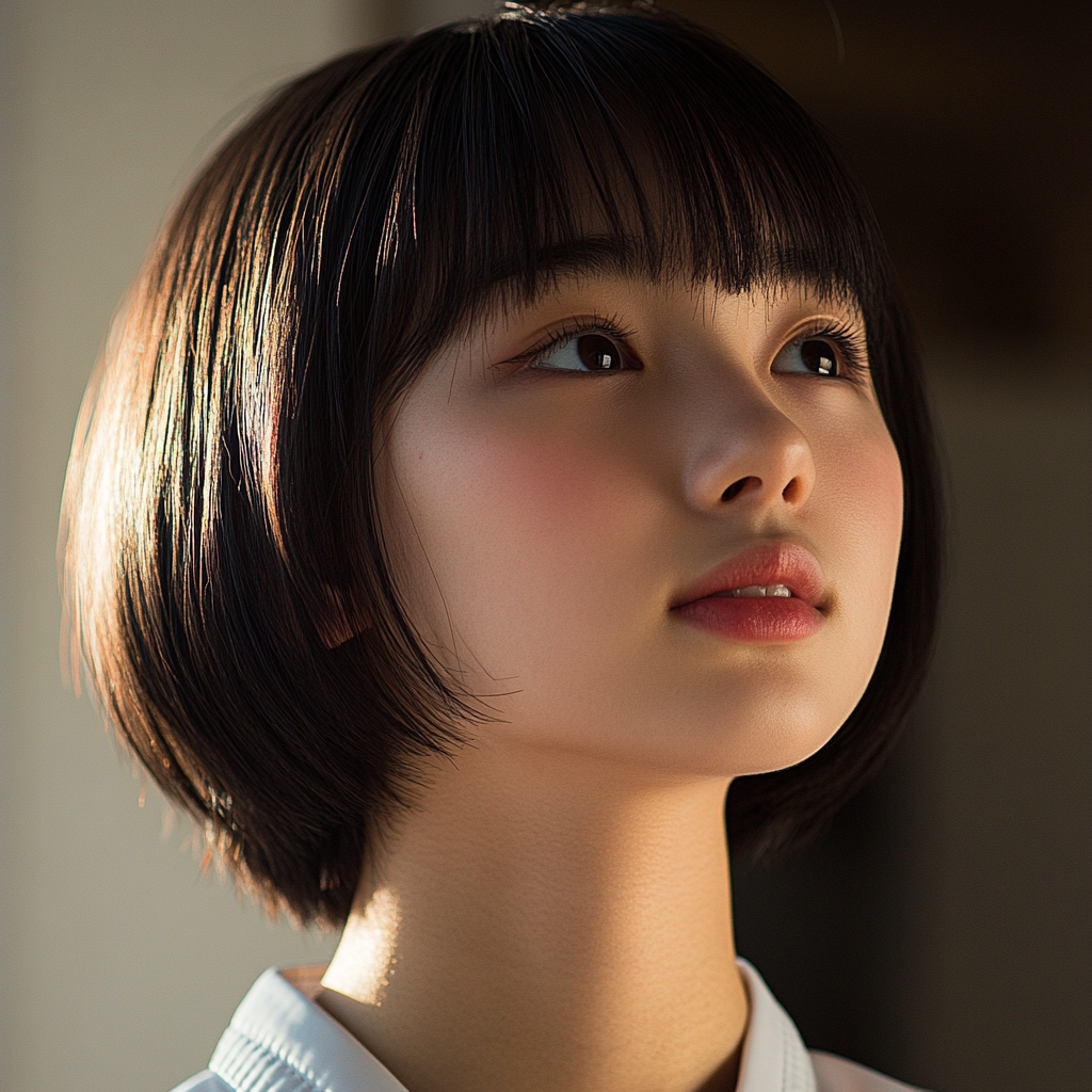 女子展现出清新甜美的学生风穿搭。她留着乌黑的长发,一侧别着精致的花朵发夹,妆容淡雅。上身穿着白色短袖衬衫,领口敞开,搭配一条黑灰条纹的领带,下身是黑色百褶短裙,整体造型简约又青春洋溢。背景是白色墙面,阳光透过树叶留下斑驳光影,衬托出她清纯可人的气质,这种穿搭在校园和日常休闲场景中都很常见,尽显少女的活力与朝气。