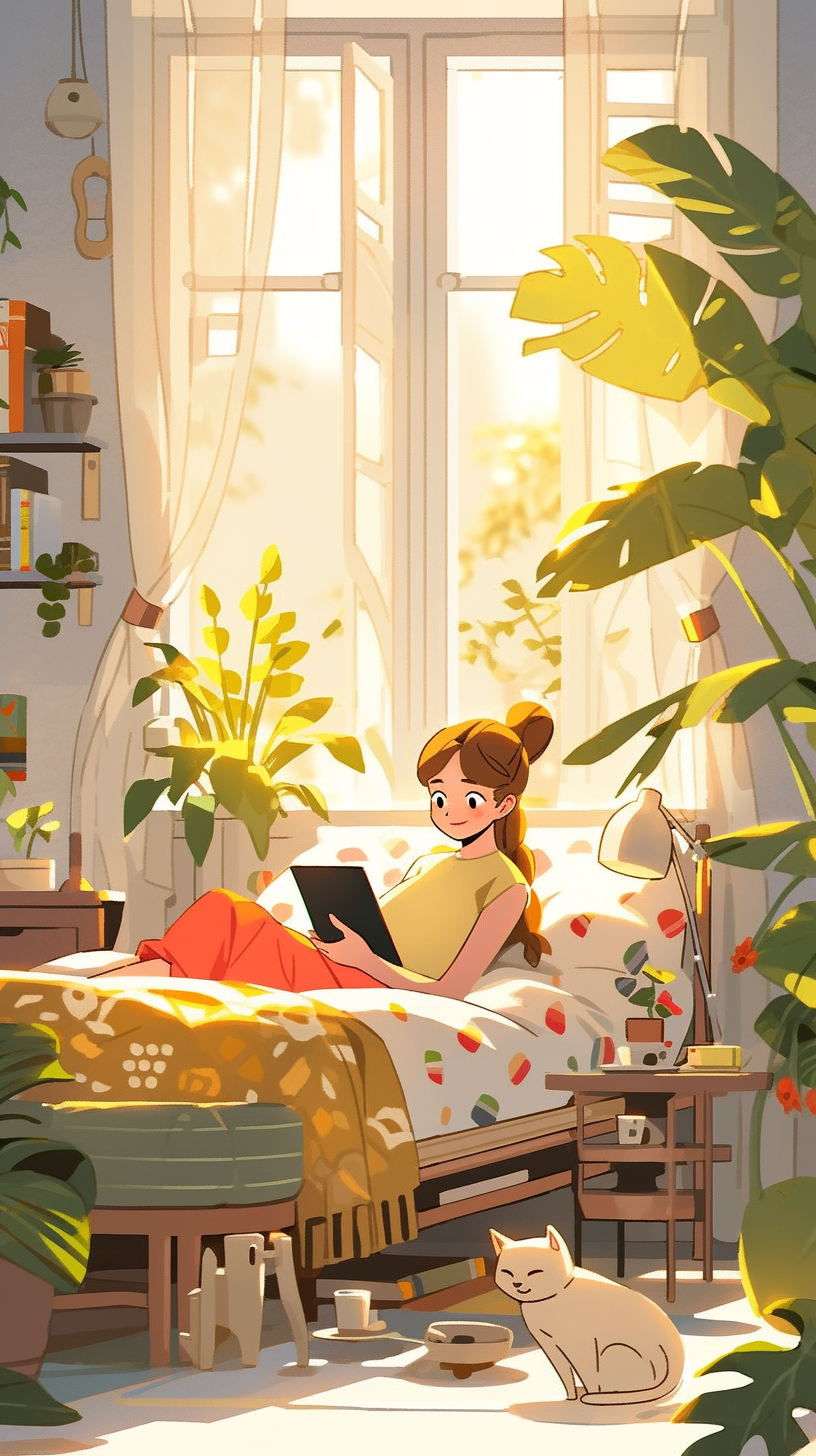 一个女生,碧城水芯搭配风,阳台,植物,小溪,裙子,披发,手链,侧脸,精致的五官,春天
