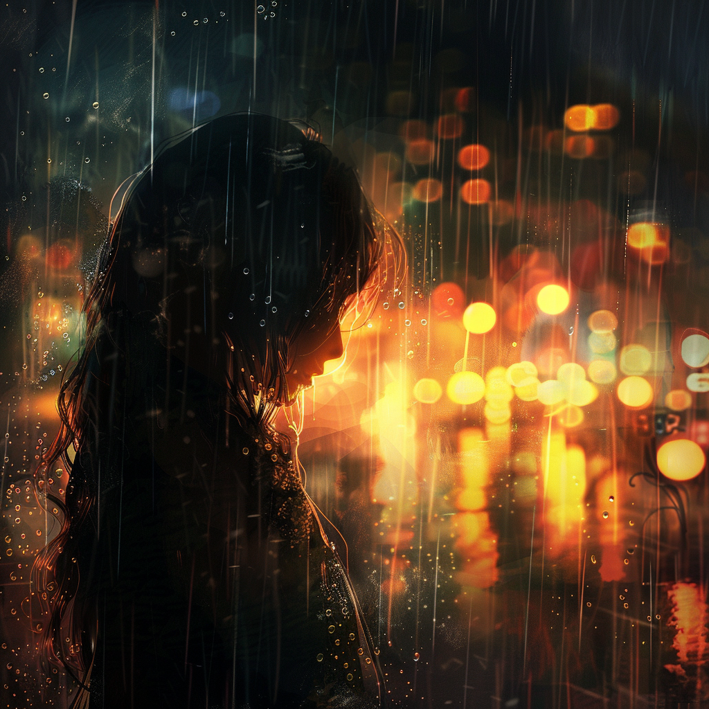 一位女同学在雨中哭,突然一个光照亮了她的世界