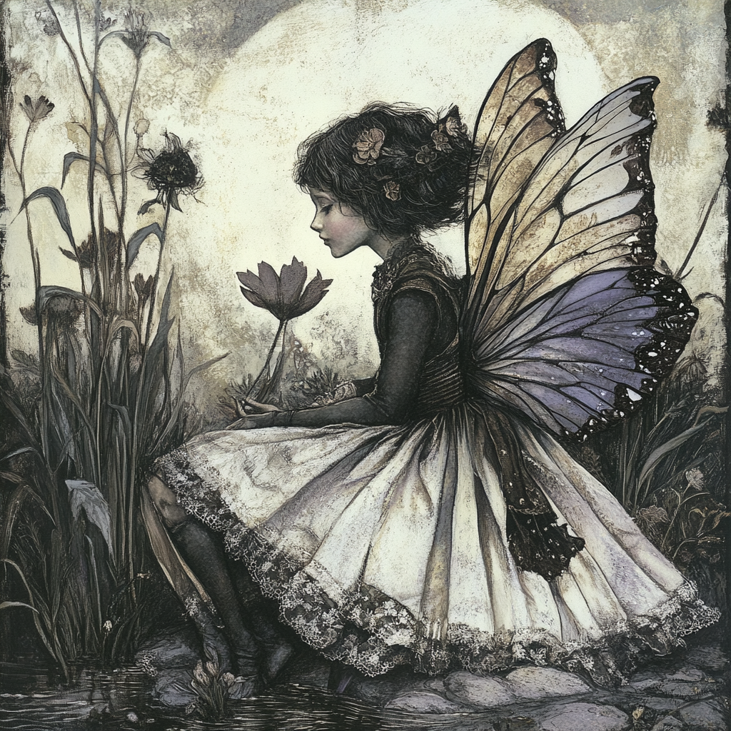 图宫崎骏风格,一个勇敢的小女孩历尽艰辛万苦寻找梅花救治母亲。女孩独自一人来到神秘的森林。夸张的比例表现、柔和的光线效果、背景虚化突出主体互动。超高清,超细节,镜头聚焦在雪狼守护梅花的场景和小女孩昂首挺胸勇敢的面对