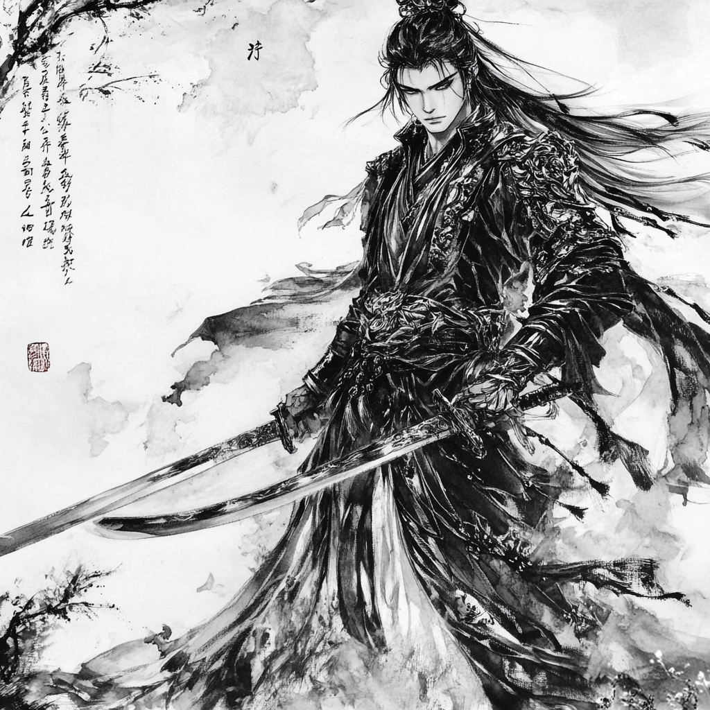 伪厚涂,半身镜头,面部大特写,魔幻古风,魔尊,BJD,男,深黑色古装汉服,刺绣鎏金黑色恶魔大袖衫,黑色长发及腰,化妆,精美绝伦的五官,皮肤白皙光滑细腻,黑色眼线,黑色眼影,泪痣,灰色剑眉,腹黑,五指白皙修长,皮肤光滑如瓷,美男,风流,手持黑色仙剑。漫画风格,漫画线条加粗,高对比度线条,线稿优先,清晰轮廓,硬边线条,手绘线稿质感,凌乱线条,复古网点,黑色描边,强轮廓线,尖锐线条,装饰性线条:添加花纹、纹路等细节线条(如服饰褶皱、道具纹理) UHD,电影感,电影般的,超高分辨率,最高细节,最高质量,深景深,64K,超高清画质。左侧身视图和正视图