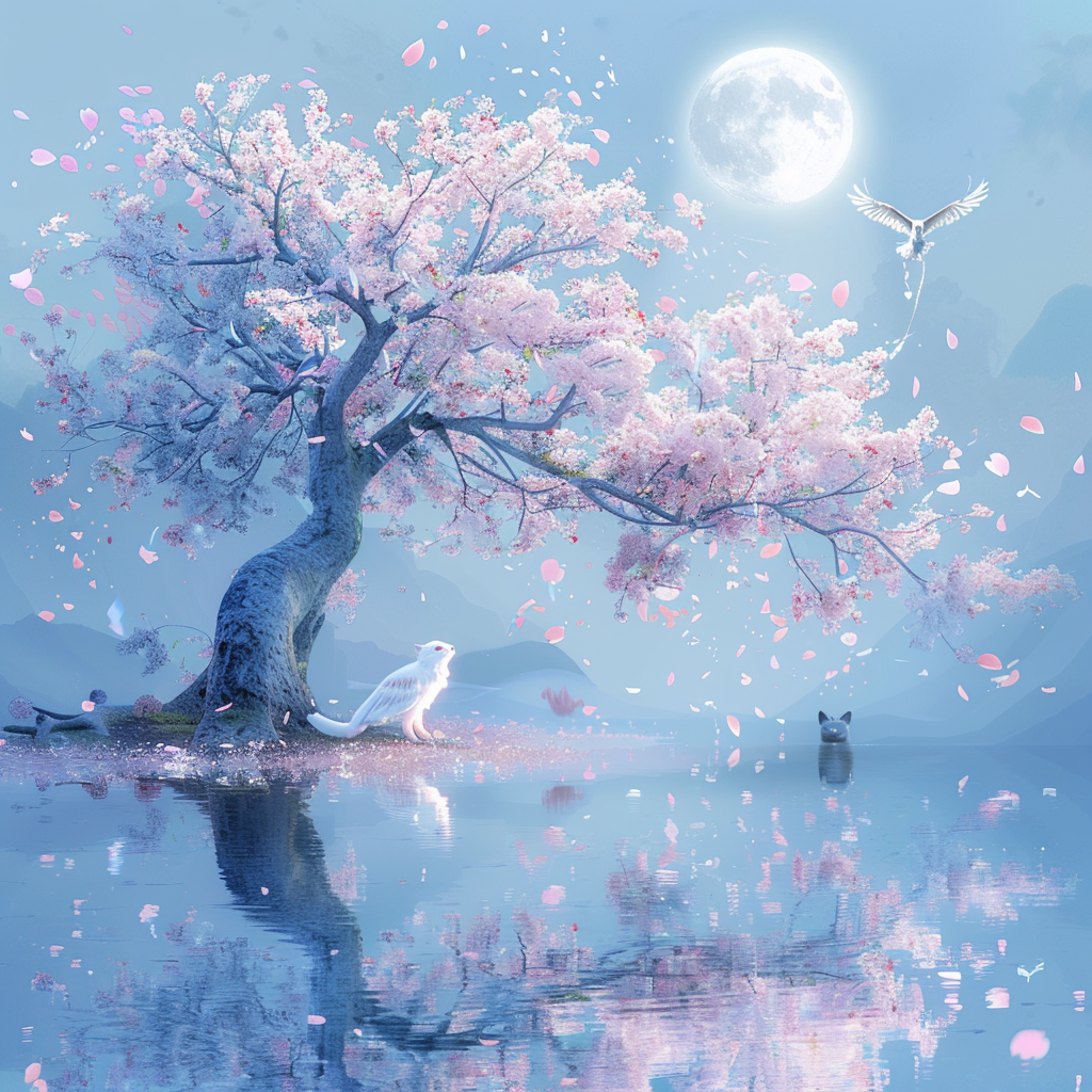 请生成一张创意合成图片,画面主体是一只白色的猫,它坐在小船上,戴着黑色的帽子和红色的墨镜,正在拉一把小提琴,表情专注。在猫的身后,有一条露出水面的鲨鱼,鲨鱼的嘴巴张开,露出锋利的牙齿,似乎在威胁着小船和猫。然而,这只猫丝毫不为所动,仍然专注于演奏小提琴。整个画面充满幽默和创意,展现猫的‘酷劲’和对危险的无视。摄影风格,抓拍图片。
