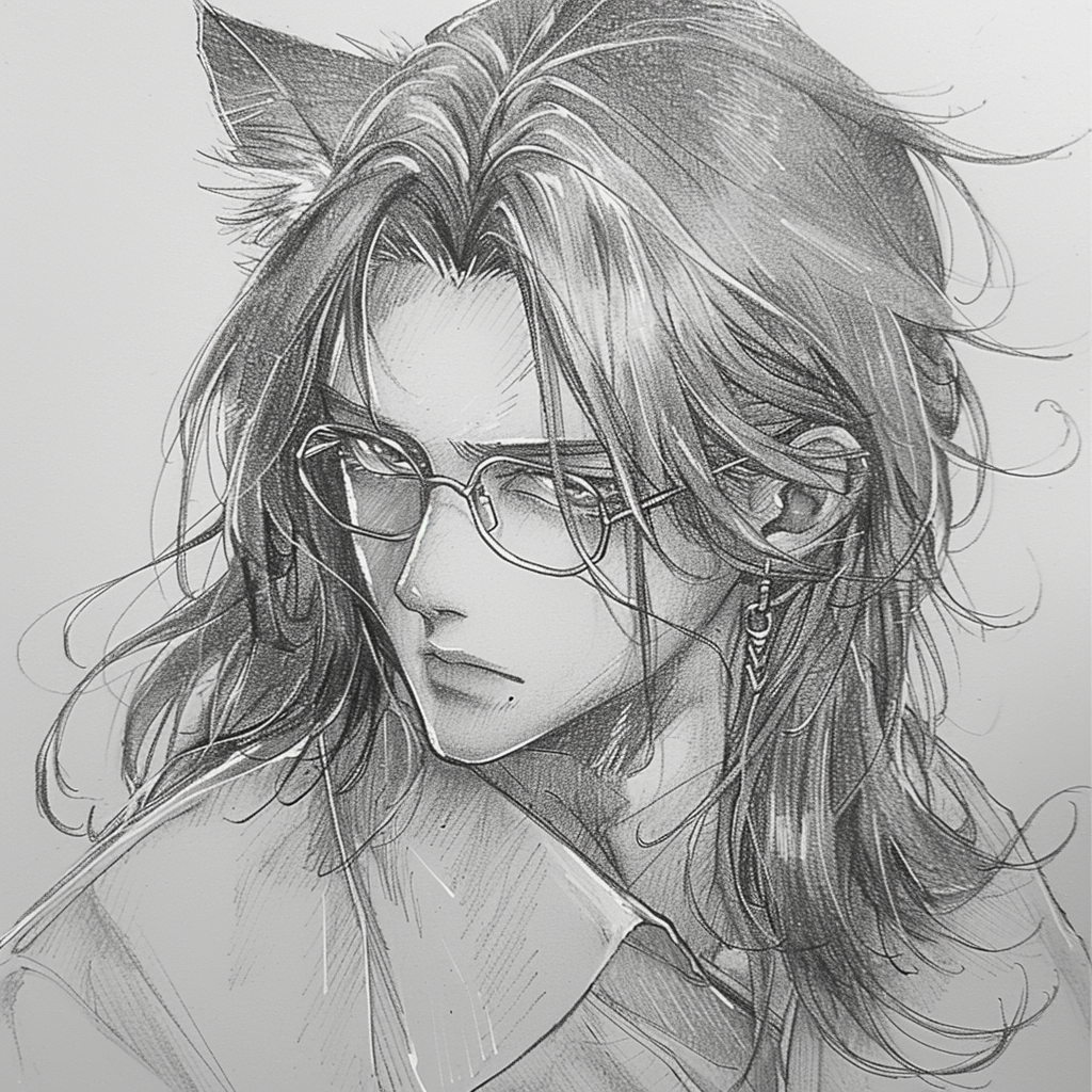 场景构图:司马迁以跪坐姿态居于画面中央,身后夯土墙面肌理斑驳,表面可见竹篾编织纹路与风化裂痕。左侧斜置梯形竹简架,分三层堆叠近百卷简册,部分简牒边缘磨损露出竹纤维。右后方立式木格窗棂间透出深青色夜空,一截虬曲枯枝横斜,弦月冷光在简册表面投下龟甲状格栅阴影。人物细节:司马迁面部呈深麦色,眉弓骨突出形成深邃眼窝,眼角鱼尾纹如刀刻般延伸至鬓角。鼻梁挺直但鼻翼两侧法令纹明显,下颌线条因缺齿稍显松弛。唇色苍白无血色,下巴光洁无任何须根残留。灰白头发以麻布巾扎成椎髻,发际线后移露出宽阔前额,耳际散落数缕银丝。服饰考据:身着右衽曲裾深衣,衣料为粗织苎麻本色,领缘及袖口镶靛青细边(宽度0.8厘米符合马王堆出土实物)。腰间束两指宽葛布带,左侧悬青玉髓印章(参考满城汉墓组佩形制)。曲裾下摆自然铺展于苇席,露出磨损严重的翘头布履,鞋底可见多次修补的葛麻补丁。器物陈设:1. 髹漆松木案几(长120cm×宽60cm×高30cm)表面细密龟裂纹中沁入墨渍,右端置错金云气纹博山炉,炉体高15cm,山形盖镂空处逸出青烟呈螺旋上升。2. 左案角青铜雁鱼灯展开双翼,灯盘盛半凝羊脂,灯烟经雁颈导入腹部清水。灯影在简面投射出水波纹,与墨字形成动态叠