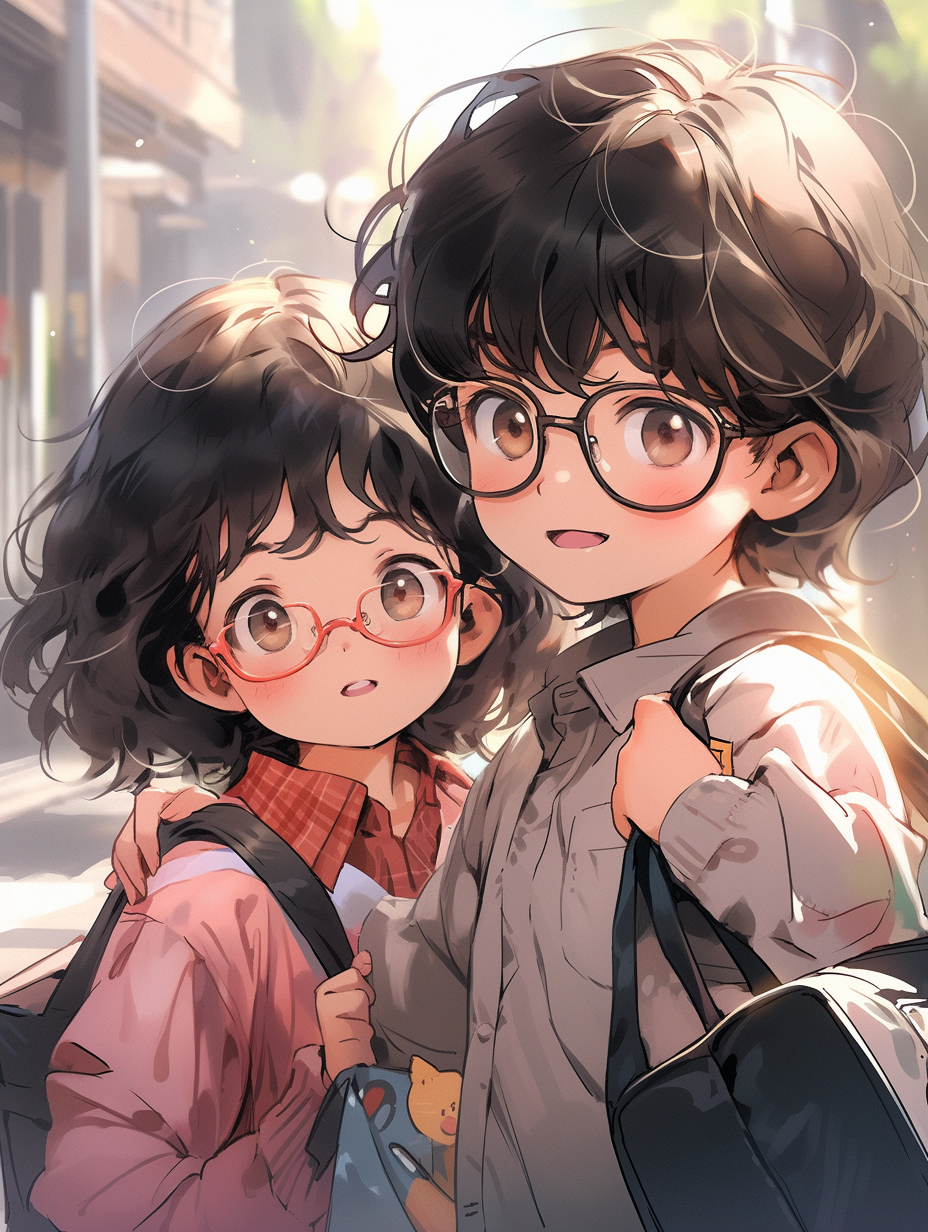 路边两边垂柳盛开,粉色紫色鲜花盛开,路的尽头是一个酒家,酒家的名字是LUCk浓酒馆,酒家院子里鲜花盛开,有向日葵、绣球花。一个身材健朗、英俊,穿着白衬衣的男子拉着一个身材高挑,大波浪长发头戴蝴蝶结,穿着白色连衣裙的女子走向酒家。漫画风格
