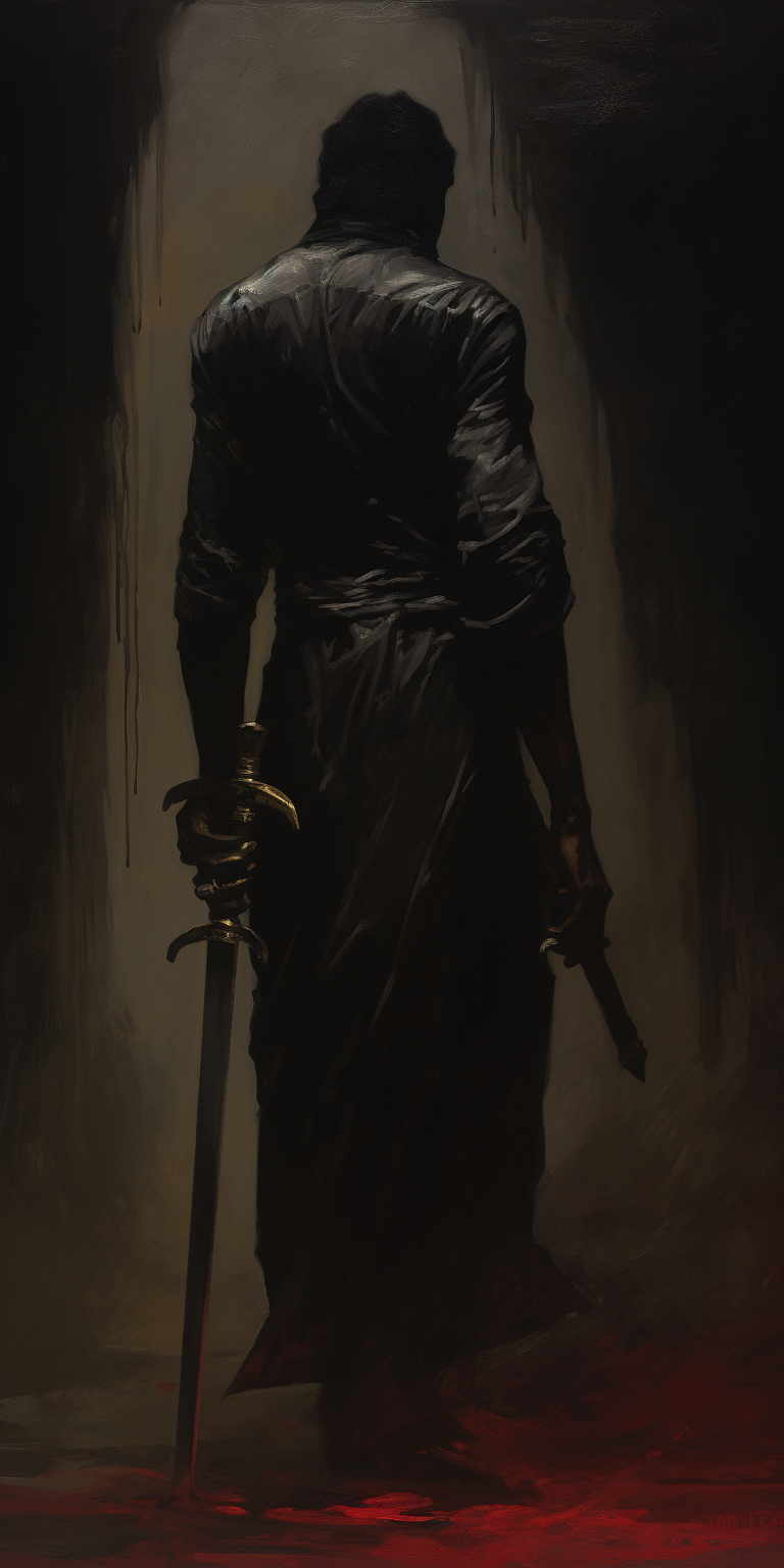 一把崭新的黑色的长剑,细长,精致,看起来十分轻盈,红色的魔法气息萦绕,压迫感强,整把剑显得十分精致并富有光泽,剑上有郁金香一般的银色装饰,剑身很细