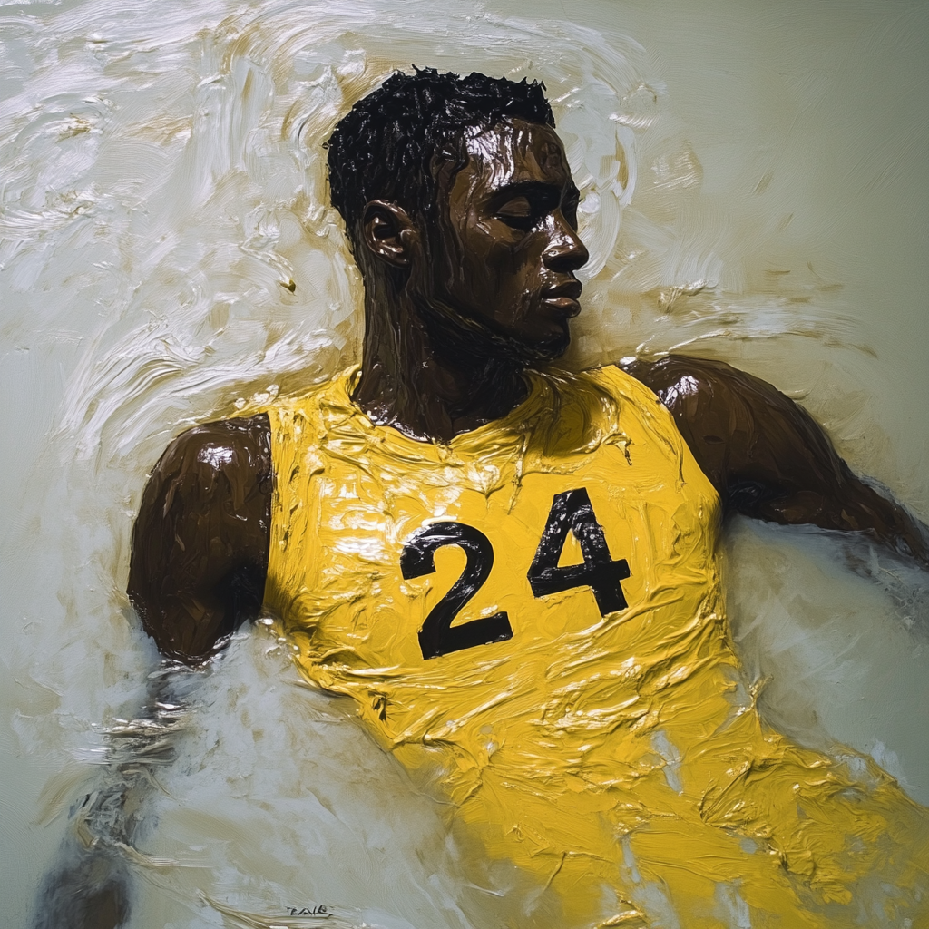 一个黑皮肤男人穿着24号黄色球衣 被牛奶淹没