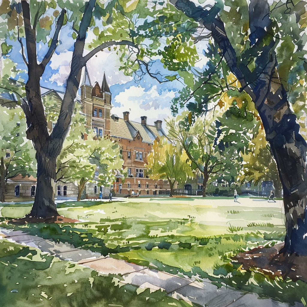 依然青翠却已略显倦意的高大枫叶树下,一片片宽大的叶片边缘悄然染上淡黄,在午后的微风中打着旋儿,轻盈地飘落在滚烫的地面。阳光穿过开始稀疏的树冠,投下晃动的光斑。