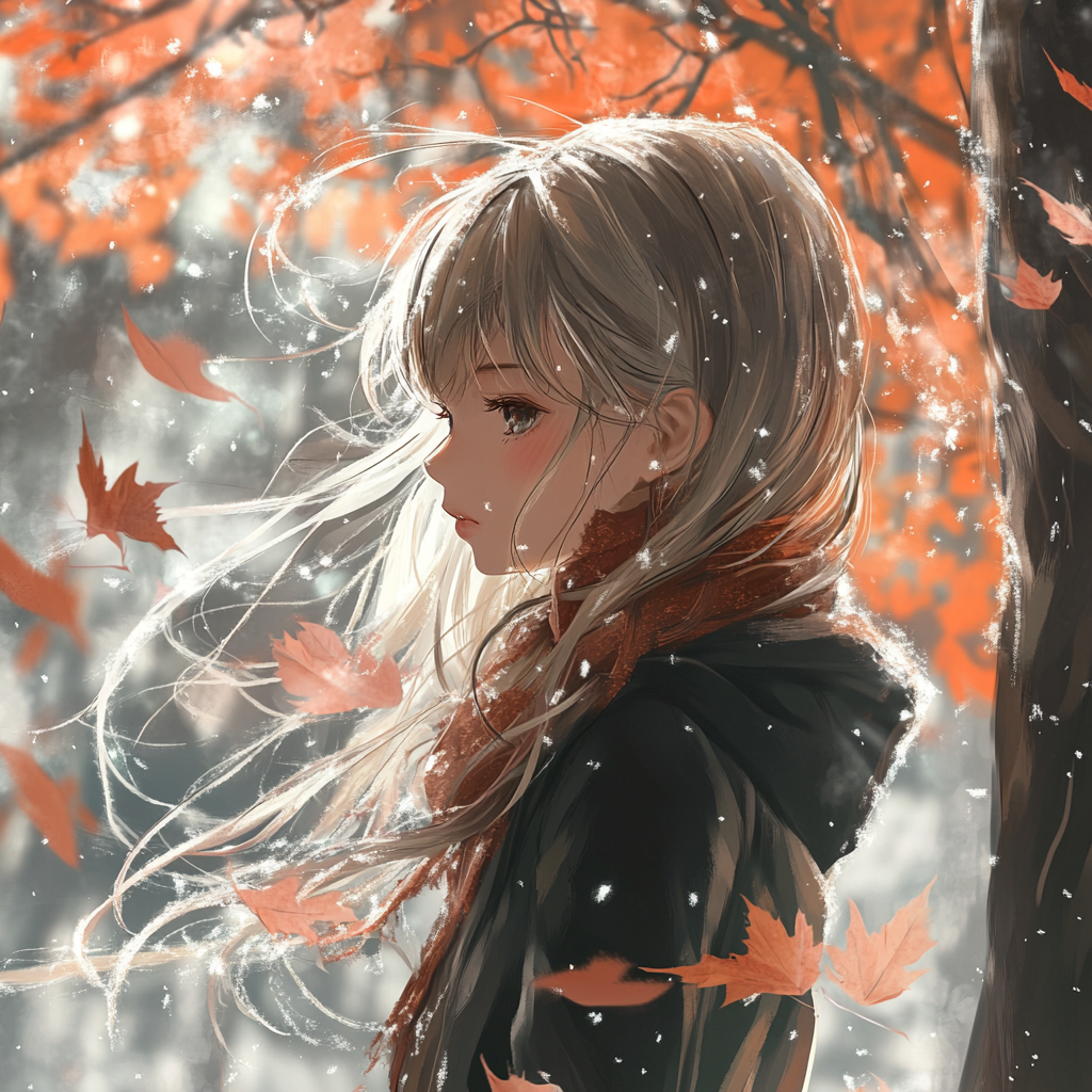 依然青翠却已略显倦意的高大枫叶树下,一片片宽大的叶片边缘悄然染上淡黄,在午后的微风中打着旋儿,轻盈地飘落在滚烫的地面。阳光穿过开始稀疏的树冠,投下晃动的光斑。