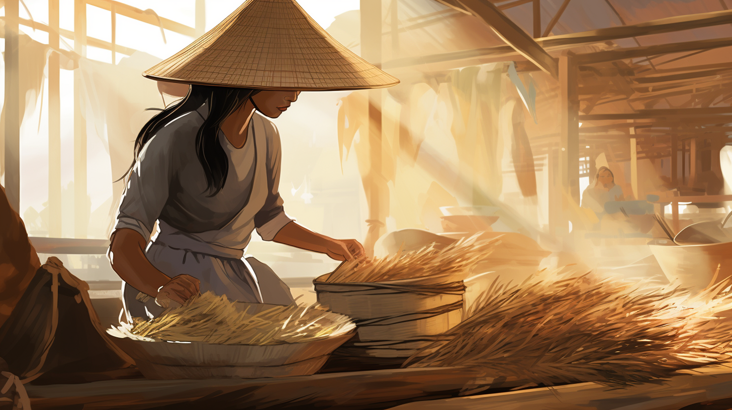 场景构图:司马迁以跪坐姿态居于画面中央,身后夯土墙面肌理斑驳,表面可见竹篾编织纹路与风化裂痕。左侧斜置梯形竹简架,分三层堆叠近百卷简册,部分简牒边缘磨损露出竹纤维。右后方立式木格窗棂间透出深青色夜空,一截虬曲枯枝横斜,弦月冷光在简册表面投下龟甲状格栅阴影。人物细节:司马迁面部呈深麦色,眉弓骨突出形成深邃眼窝,眼角鱼尾纹如刀刻般延伸至鬓角。鼻梁挺直但鼻翼两侧法令纹明显,下颌线条因缺齿稍显松弛。唇色苍白无血色,下巴光洁无任何须根残留。灰白头发以麻布巾扎成椎髻,发际线后移露出宽阔前额,耳际散落数缕银丝。服饰考据:身着右衽曲裾深衣,衣料为粗织苎麻本色,领缘及袖口镶靛青细边(宽度0.8厘米符合马王堆出土实物)。腰间束两指宽葛布带,左侧悬青玉髓印章(参考满城汉墓组佩形制)。曲裾下摆自然铺展于苇席,露出磨损严重的翘头布履,鞋底可见多次修补的葛麻补丁。器物陈设:1. 髹漆松木案几(长120cm×宽60cm×高30cm)表面细密龟裂纹中沁入墨渍,右端置错金云气纹博山炉,炉体高15cm,山形盖镂空处逸出青烟呈螺旋上升。2. 左案角青铜雁鱼灯展开双翼,灯盘盛半凝羊脂,灯烟经雁颈导入腹部清水。灯影在简面投射出水波纹,与墨字形成动态叠