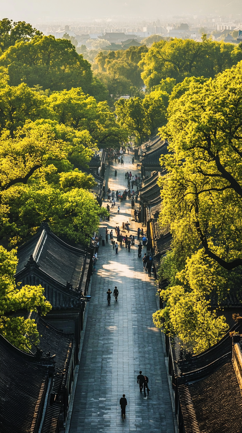 一条宽阔的双向车行道呈缓坡向下延伸,仿佛是大地铺展的丝带。道路两旁是修剪整齐、绿意盎然的草坪,如同柔软的绿毯。草坪上矗立着两排参天大树,它们冠幅超大,粗壮的枝干向四周伸展。枝头密密麻麻地开满了蓝色花朵,花瓣如蝶翼般轻盈。两排大树的树冠相互交织,形成了一条梦幻般的拱形蓝花大道。阳光透过蓝花的缝隙洒下,在路面上形成一片片斑斓的光影。双向两车道的路面上,星星点点地散落着蓝色花瓣,仿佛是大自然洒落的浪漫诗篇。整个画面干净明亮,大气唯美,宛如大师笔下的绝美画卷,尽显高清、高品质之美。
