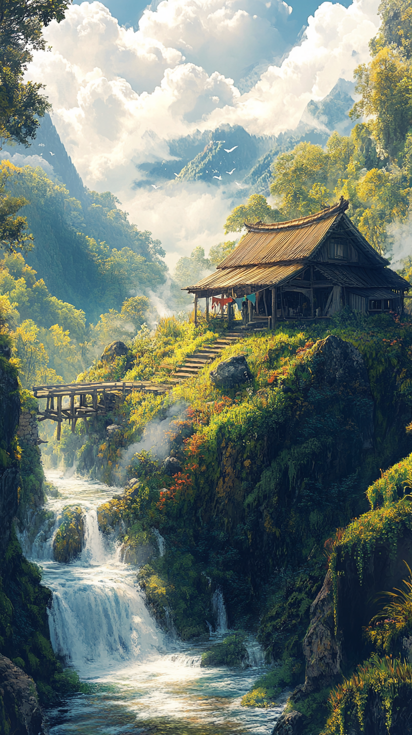 在一个美丽的小村庄里,住着一个名叫小米的小女孩。小米的后院种着一株娇艳的月季花,每年春天,它都会开出色彩斑斓的花朵,散发出浓郁的香气,吸引了许多小蜜蜂和蝴蝶。小米每天都会在花丛中嬉戏,和花朵们分享她的小秘密。图宫崎骏风格,花园里一朵美丽的百合花和一个天真无邪的小女孩开心的互动,翠绿的草地,湛蓝的天空,飘浮的白云,五颜六色的野花。童趣的、开心的。超现实主义。梦幻色彩渲染、夸张的比例表现、柔和的光线效果、背景虚化突出主体互动。超高清,超细节,镜头聚焦在一朵有魔力的月季花和小女孩身上