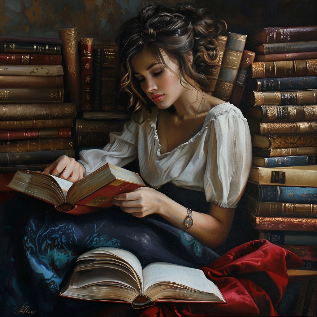 top view of A blurry woman reading a book, set against a pink and blue gradient background, There are stars,in the style of Rinko Kawauchi.