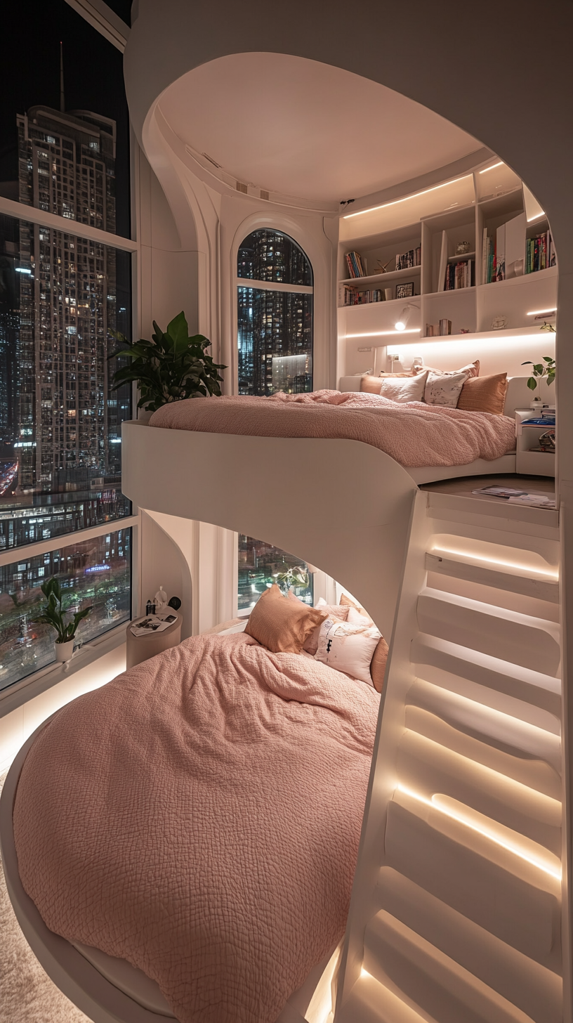 top view of A blurry woman reading a book, set against a pink and blue gradient background, There are stars,in the style of Rinko Kawauchi.