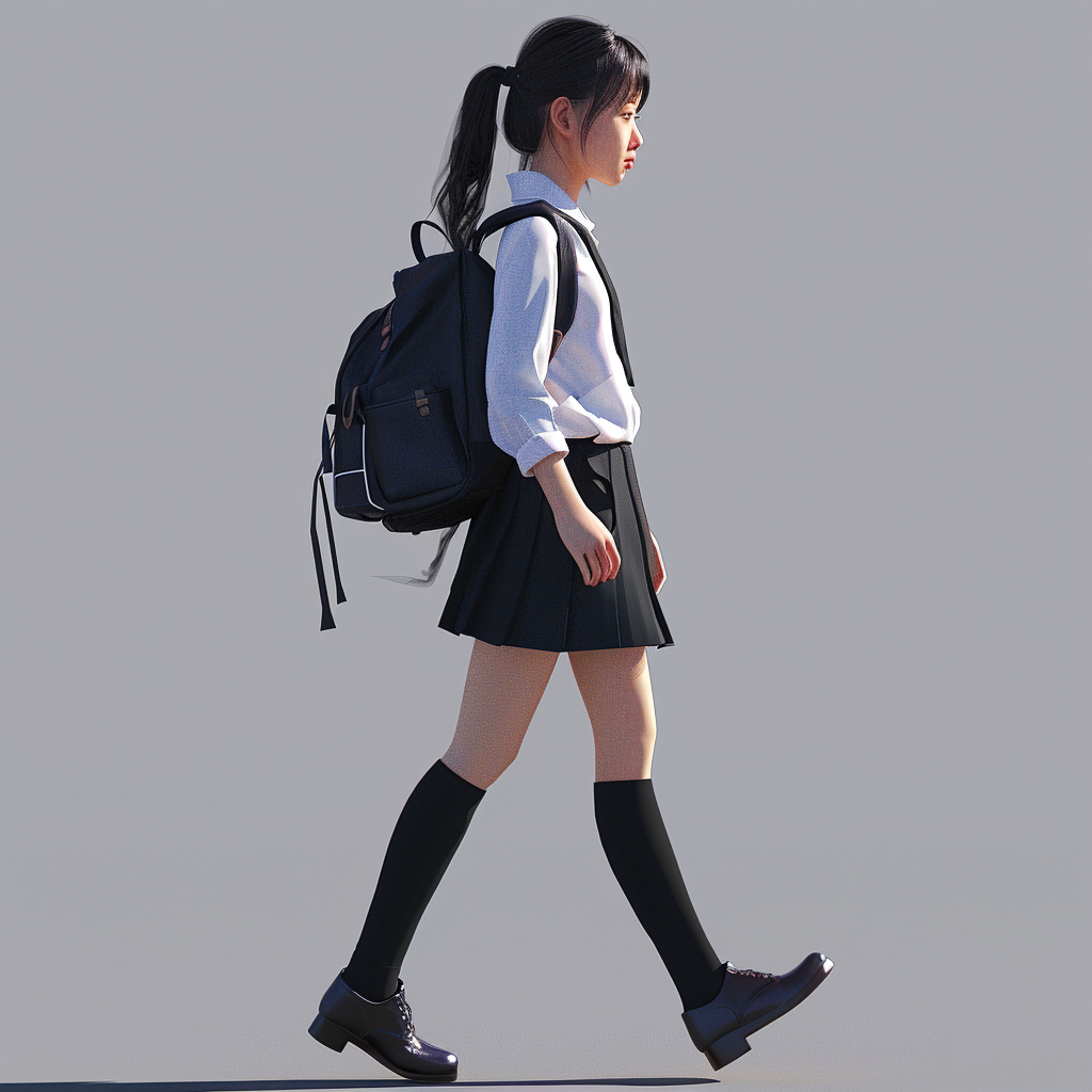 女子展现出清新甜美的学生风穿搭。她留着乌黑的长发,一侧别着精致的花朵发夹,妆容淡雅。上身穿着白色短袖衬衫,领口敞开,搭配一条黑灰条纹的领带,下身是黑色百褶短裙,整体造型简约又青春洋溢。背景是白色墙面,阳光透过树叶留下斑驳光影,衬托出她清纯可人的气质,这种穿搭在校园和日常休闲场景中都很常见,尽显少女的活力与朝气。