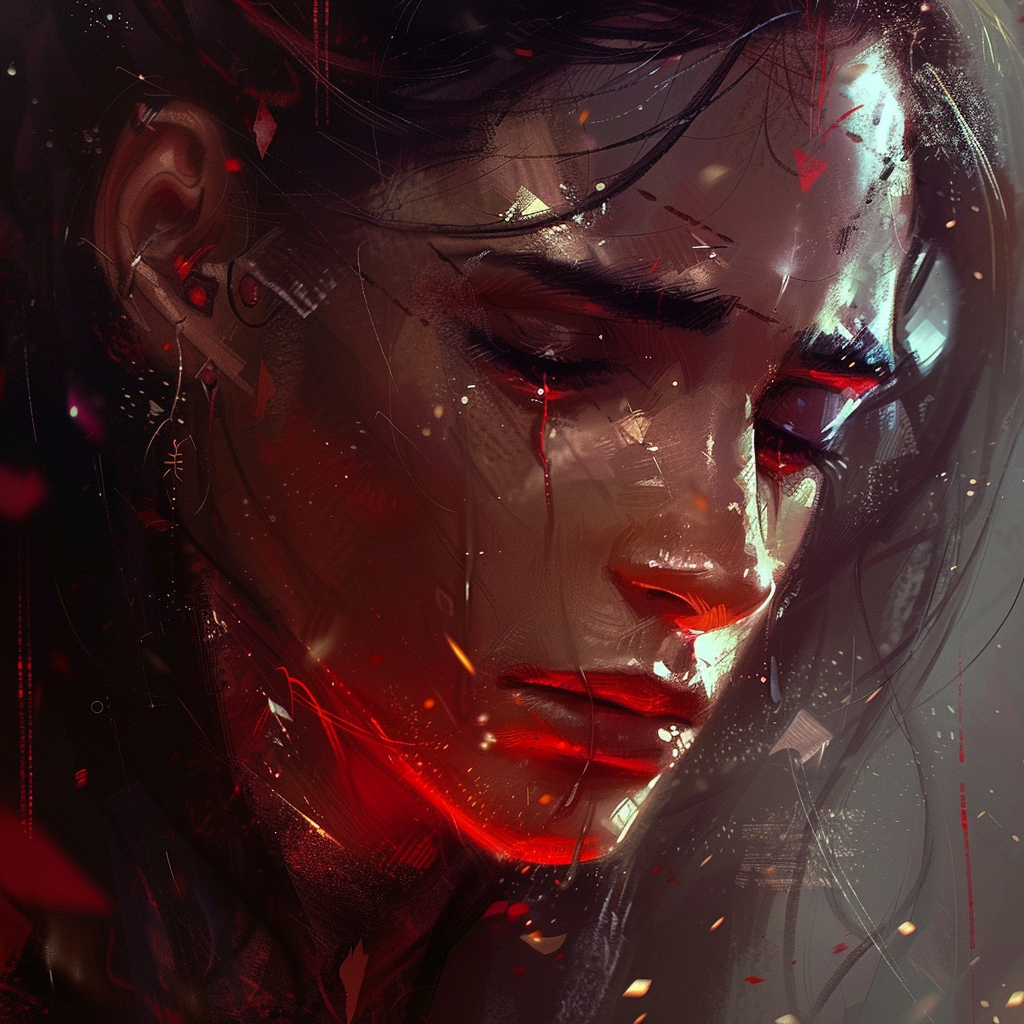 场景构图:司马迁以跪坐姿态居于画面中央,身后夯土墙面肌理斑驳,表面可见竹篾编织纹路与风化裂痕。左侧斜置梯形竹简架,分三层堆叠近百卷简册,部分简牒边缘磨损露出竹纤维。右后方立式木格窗棂间透出深青色夜空,一截虬曲枯枝横斜,弦月冷光在简册表面投下龟甲状格栅阴影。人物细节:司马迁面部呈深麦色,眉弓骨突出形成深邃眼窝,眼角鱼尾纹如刀刻般延伸至鬓角。鼻梁挺直但鼻翼两侧法令纹明显,下颌线条因缺齿稍显松弛。唇色苍白无血色,下巴光洁无任何须根残留。灰白头发以麻布巾扎成椎髻,发际线后移露出宽阔前额,耳际散落数缕银丝。服饰考据:身着右衽曲裾深衣,衣料为粗织苎麻本色,领缘及袖口镶靛青细边(宽度0.8厘米符合马王堆出土实物)。腰间束两指宽葛布带,左侧悬青玉髓印章(参考满城汉墓组佩形制)。曲裾下摆自然铺展于苇席,露出磨损严重的翘头布履,鞋底可见多次修补的葛麻补丁。器物陈设:1. 髹漆松木案几(长120cm×宽60cm×高30cm)表面细密龟裂纹中沁入墨渍,右端置错金云气纹博山炉,炉体高15cm,山形盖镂空处逸出青烟呈螺旋上升。2. 左案角青铜雁鱼灯展开双翼,灯盘盛半凝羊脂,灯烟经雁颈导入腹部清水。灯影在简面投射出水波纹,与墨字形成动态叠
