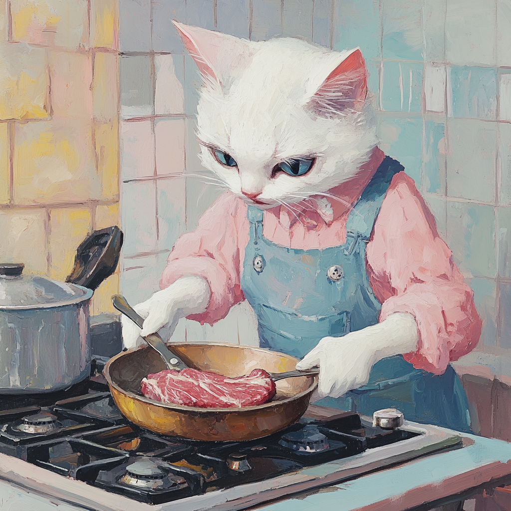 请生成一张创意合成图片,画面主体是一只白色的猫,它坐在小船上,戴着黑色的帽子和红色的墨镜,正在拉一把小提琴,表情专注。在猫的身后,有一条露出水面的鲨鱼,鲨鱼的嘴巴张开,露出锋利的牙齿,似乎在威胁着小船和猫。然而,这只猫丝毫不为所动,仍然专注于演奏小提琴。整个画面充满幽默和创意,展现猫的‘酷劲’和对危险的无视。摄影风格,抓拍图片。