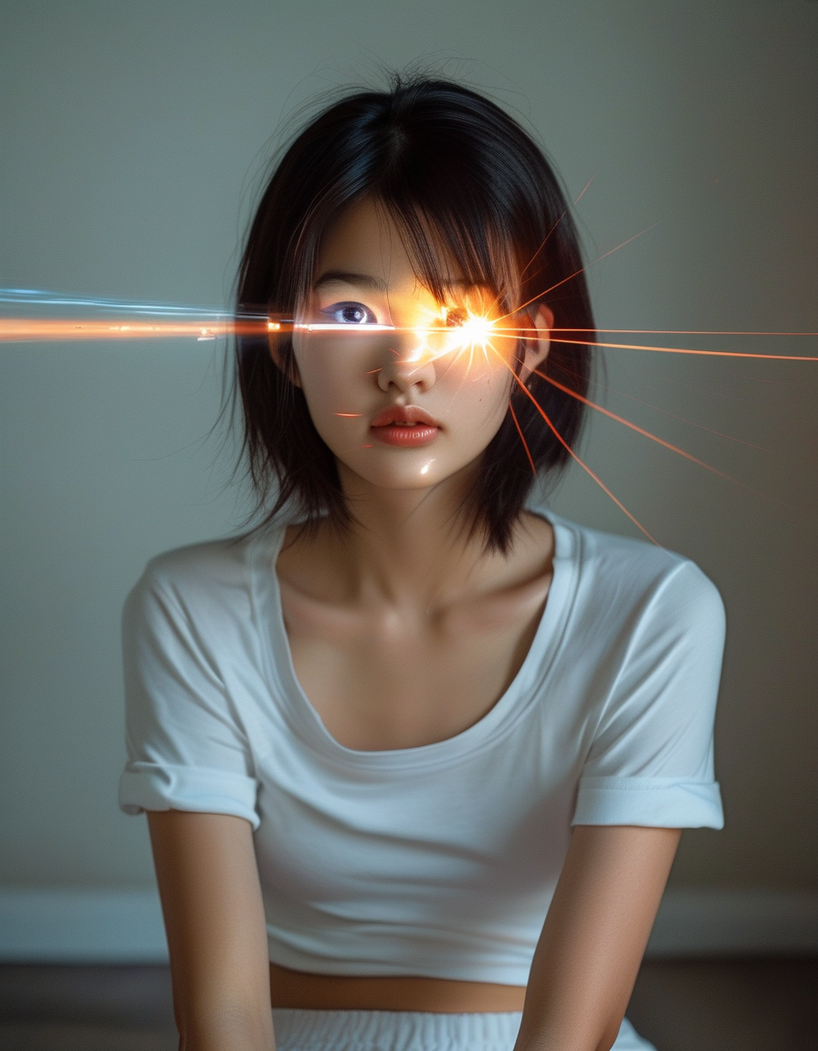 初中女孩,穿白衬衫,鹅黄色鬈发,眼睛是铁灰色或者淡灰色,鼻子到脸颊有淡淡的雀斑。双马尾发辫披在胸前,到胸部上面。内向,果断,有邻家气质,但特定时候会高贵优雅。贵族,十二岁。欧式