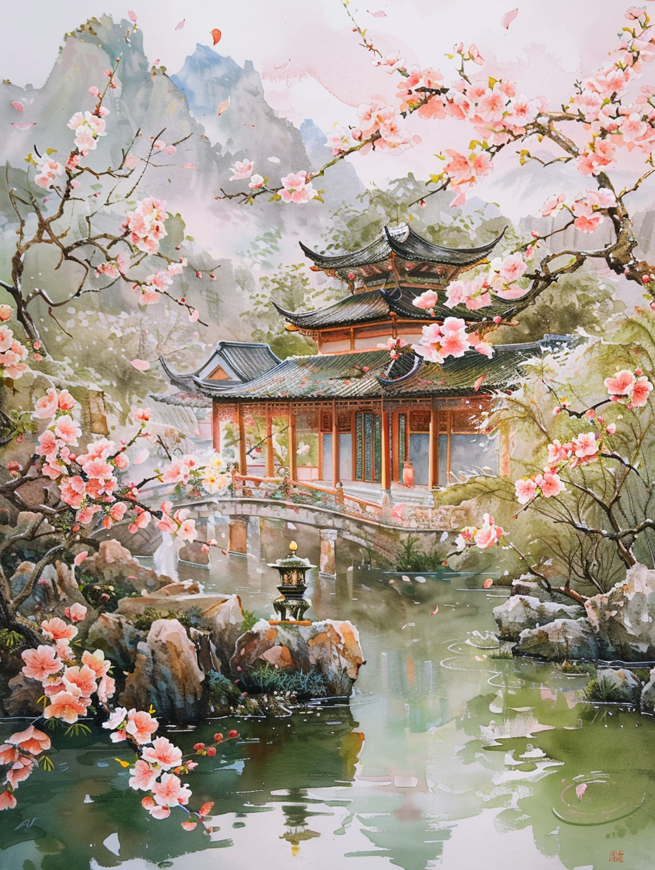 清晨,柔和的晨光斜洒进静谧的庭院,为万物披上一层金黄薄纱。一片梧桐叶悠悠然从枝头飘落,带着青黄渐变的脉络,在慢镜头般的光影中轻盈舞动。它缓缓触碰到长满青苔的石阶,那一瞬间,叶片溅起了晶莹的露珠,如细碎的珍珠般飞溅开来,在阳光里闪烁着剔透的光芒。露珠飞溅的特写,将这一美妙瞬间定格。与此同时,背景中隐约传来打更人敲响的「秋报」梆子声,清脆的声响回荡在空气中,更增添了几分秋意的宁静与悠远。