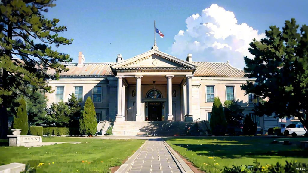 一条宽阔的双向车行道呈缓坡向下延伸,仿佛是大地铺展的丝带。道路两旁是修剪整齐、绿意盎然的草坪,如同柔软的绿毯。草坪上矗立着两排参天大树,它们冠幅超大,粗壮的枝干向四周伸展。枝头密密麻麻地开满了蓝色花朵,花瓣如蝶翼般轻盈。两排大树的树冠相互交织,形成了一条梦幻般的拱形蓝花大道。阳光透过蓝花的缝隙洒下,在路面上形成一片片斑斓的光影。双向两车道的路面上,星星点点地散落着蓝色花瓣,仿佛是大自然洒落的浪漫诗篇。整个画面干净明亮,大气唯美,宛如大师笔下的绝美画卷,尽显高清、高品质之美。