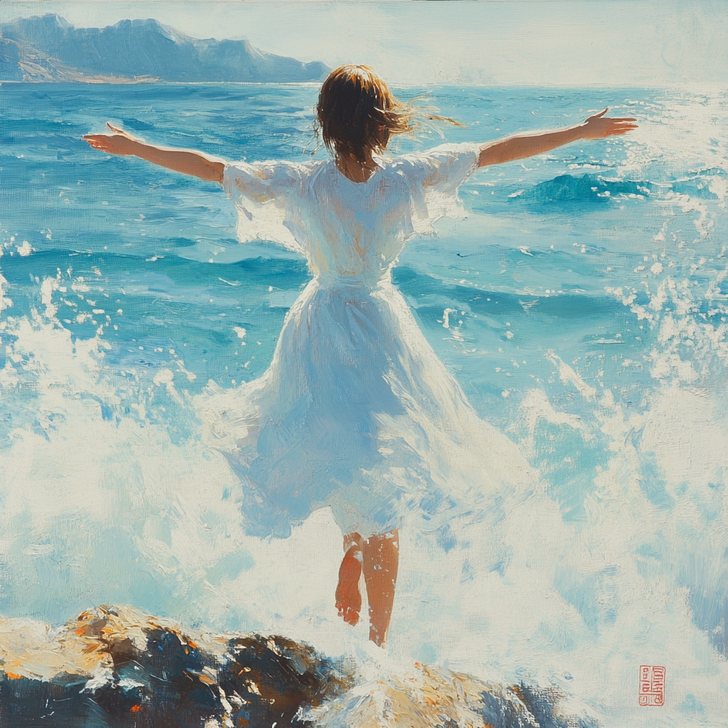 在一个美丽的小村庄里,住着一个名叫小米的小女孩。小米的后院种着一株娇艳的月季花,每年春天,它都会开出色彩斑斓的花朵,散发出浓郁的香气,吸引了许多小蜜蜂和蝴蝶。小米每天都会在花丛中嬉戏,和花朵们分享她的小秘密。图宫崎骏风格,花园里一朵美丽的百合花和一个天真无邪的小女孩开心的互动,翠绿的草地,湛蓝的天空,飘浮的白云,五颜六色的野花。童趣的、开心的。超现实主义。梦幻色彩渲染、夸张的比例表现、柔和的光线效果、背景虚化突出主体互动。超高清,超细节,镜头聚焦在一朵有魔力的月季花和小女孩身上