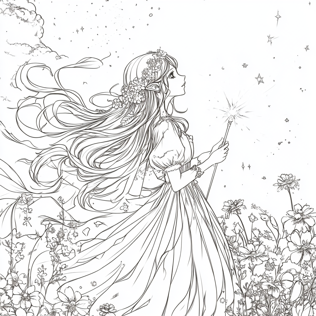 在一个美丽的小村庄里,住着一个名叫小米的小女孩。小米的后院种着一株娇艳的月季花,每年春天,它都会开出色彩斑斓的花朵,散发出浓郁的香气,吸引了许多小蜜蜂和蝴蝶。小米每天都会在花丛中嬉戏,和花朵们分享她的小秘密。图宫崎骏风格,花园里一朵美丽的百合花和一个天真无邪的小女孩开心的互动,翠绿的草地,湛蓝的天空,飘浮的白云,五颜六色的野花。童趣的、开心的。超现实主义。梦幻色彩渲染、夸张的比例表现、柔和的光线效果、背景虚化突出主体互动。超高清,超细节,镜头聚焦在一朵有魔力的月季花和小女孩身上