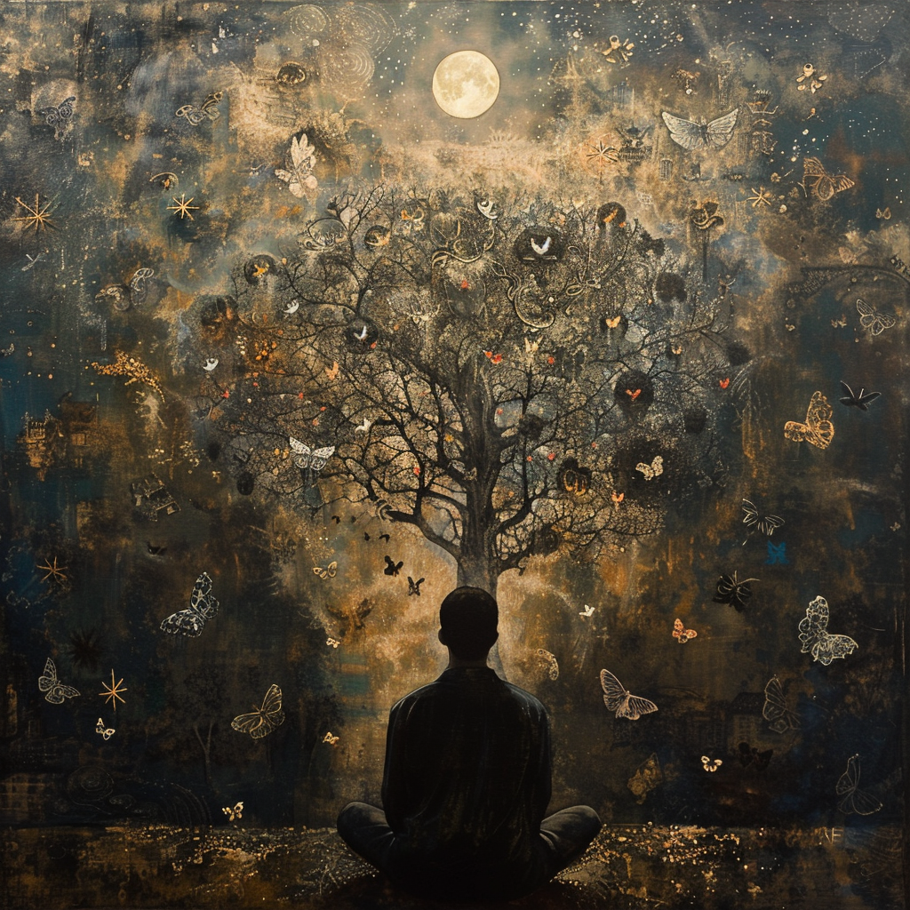 画面中,一位男子脚踏厚实的黄土,他微微仰头,目光坚定又带着几分愤懑,直直地望向苍天。他并非仙风道骨的神祇,也不是超凡脱俗的仙人,只是芸芸众生里为生活奔波的普通人。他身着朴素的衣衫,上面沾染着岁月与劳作留下的痕迹。手中或许还握着简单的工具,那是他谋生的依仗。他不过是为了那可怜巴巴的二两碎银,却仿佛在渡劫一般,历经了数十年的艰辛。每一道皱纹里都藏着生活的酸甜苦辣,每一滴汗水都见证着他的坚韧与无奈。