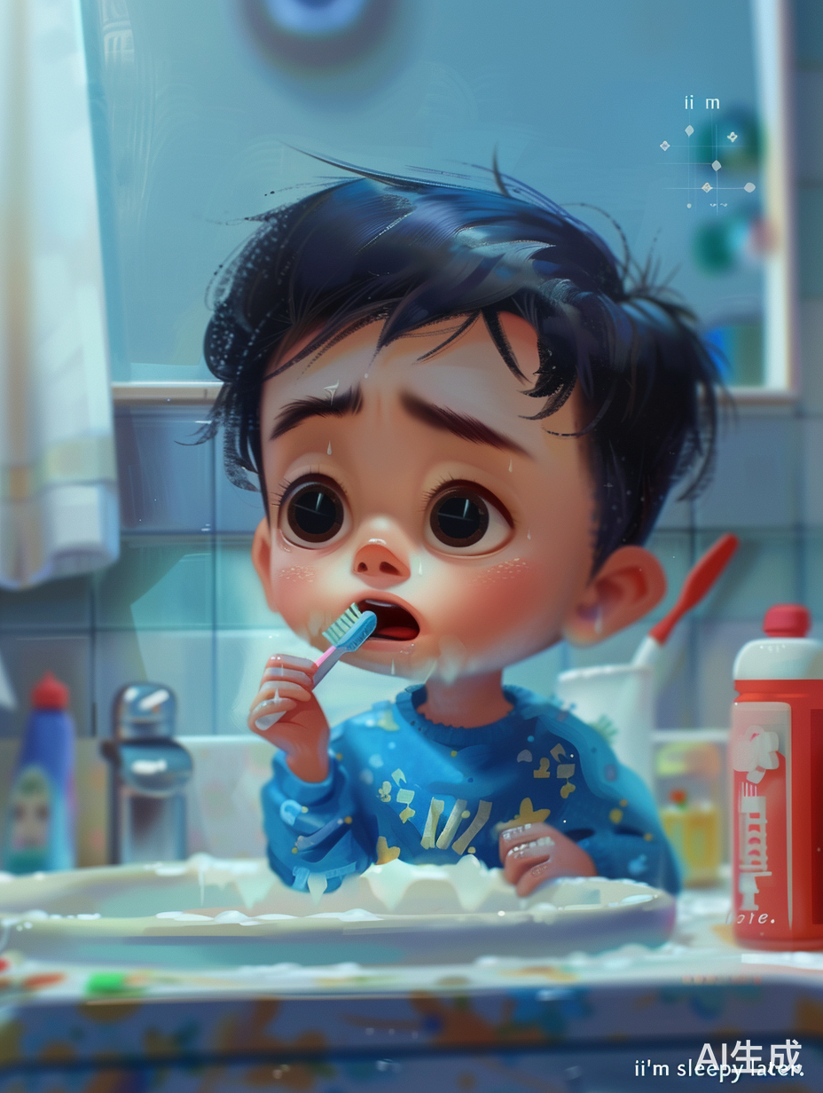 拒绝刷牙场景描述词:小光皱着眉头,双手抱胸,倔强地说“我还不困呢,等会儿再刷。”妈妈无奈的表情。