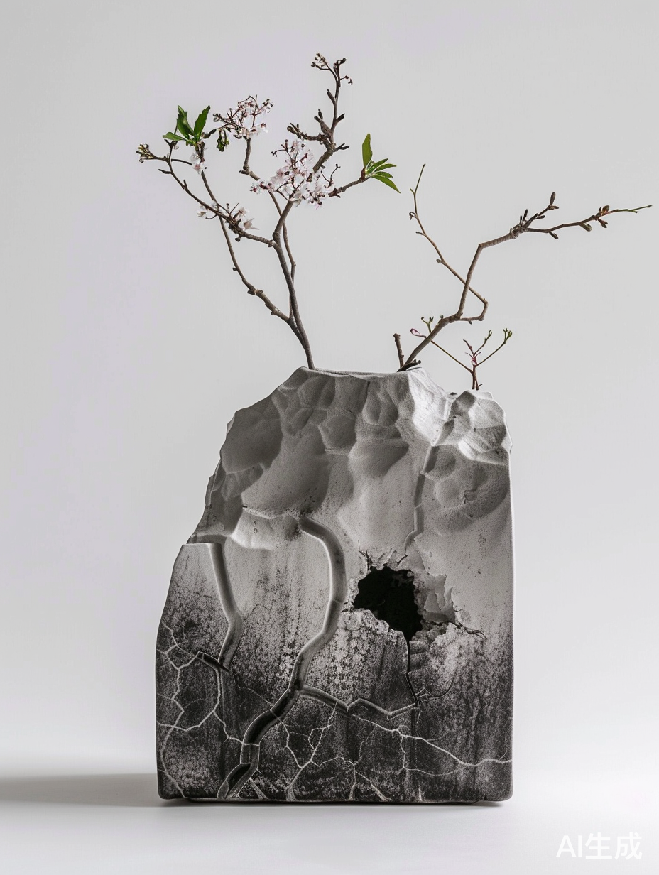 设计一只方形的陶瓷花瓶,花瓶上呈现冰岛的地貌加上土地的质感,背景没有其他物品