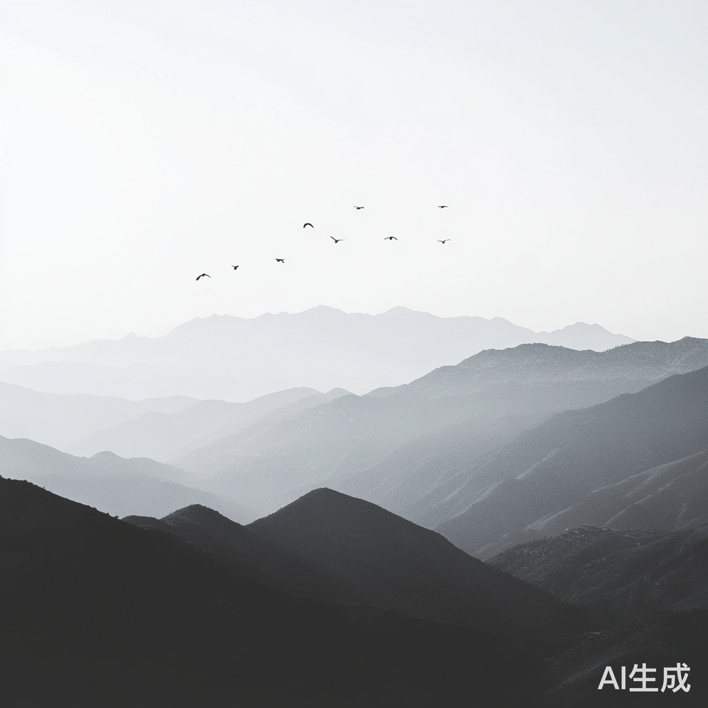 画面描述:镜头缓缓推进,展现连绵起伏的群山,天空灰蒙蒙的,没有一丝生机。山间偶尔有几只飞鸟掠过,但很快消失在天际,留下一片寂静。
