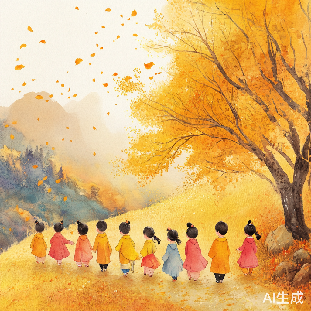 一群小猫行走在金秋小路上走着,他们穿着汉服,可爱