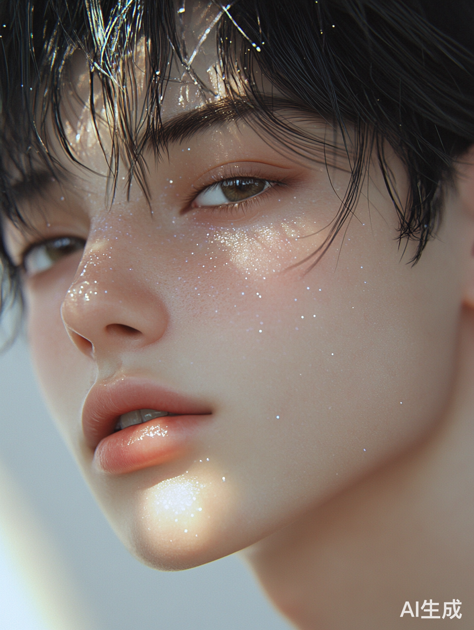 美少男,男人,黑发,短发,直发,看向屏幕,精致五官,完美的脸,清晰面部特征,特写,疯狂的,写实风格,真实感,电影感,流星雨,轮廓光,干净背景