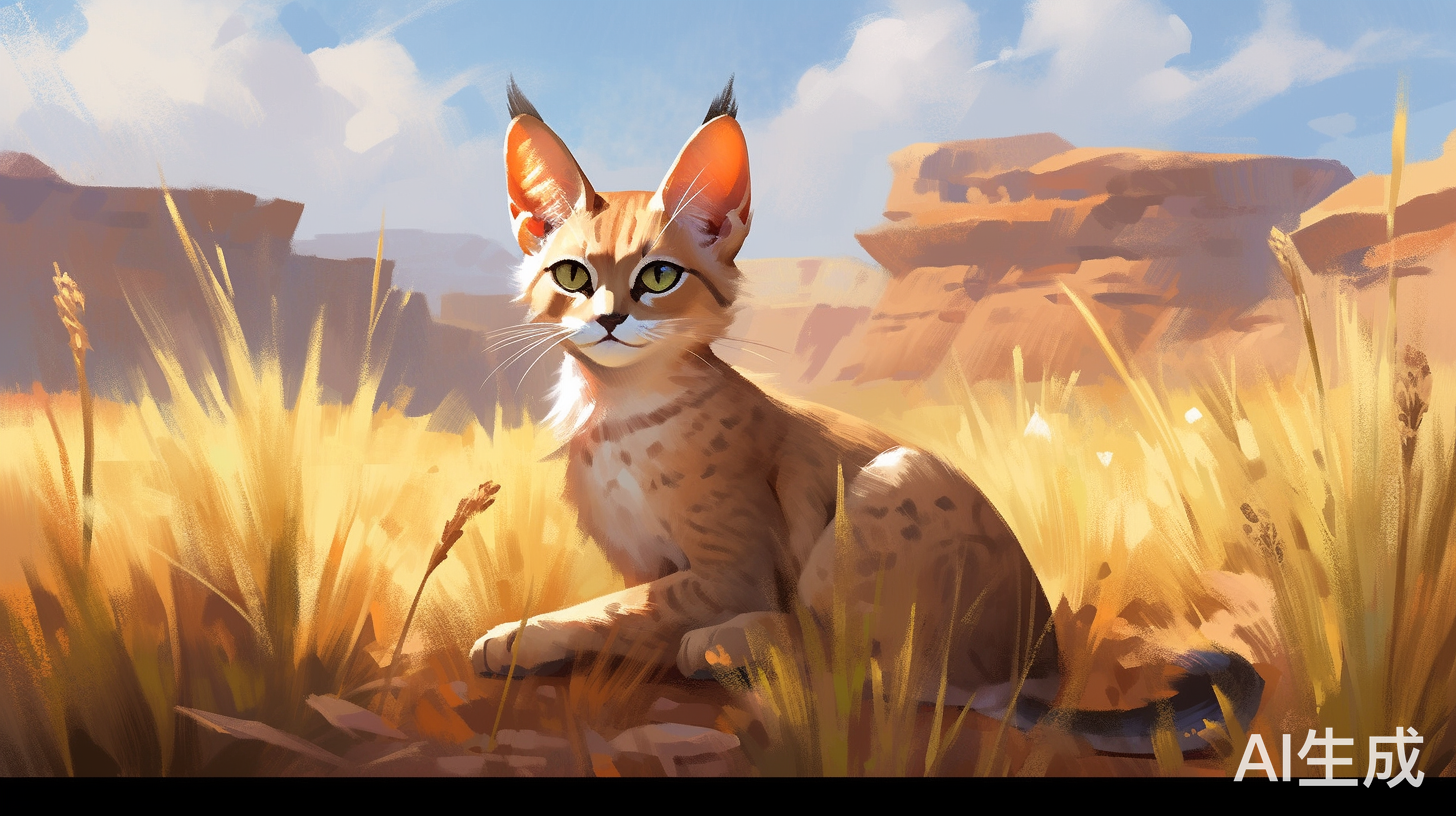 穿越到了几千年前草原上的敦煌猫咪,唯美,古老感,古老的色彩,壁画,传奇故事,仿佛穿越到了几千年前的古埃及金字塔,俯瞰,猫咪,飞跃沙漠,宏伟,真实,古老的壁画,震撼辽阔