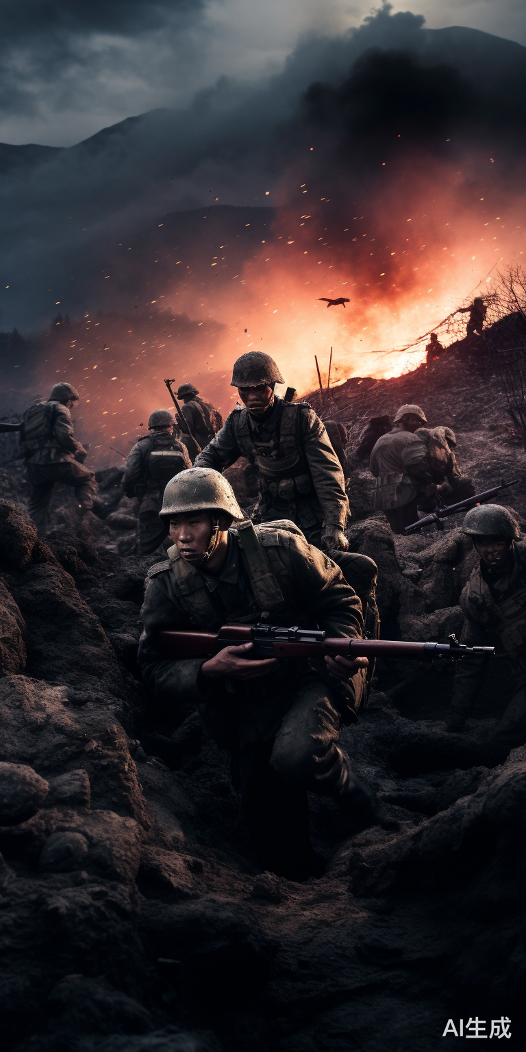 中国士兵在战场上做最后的抵抗